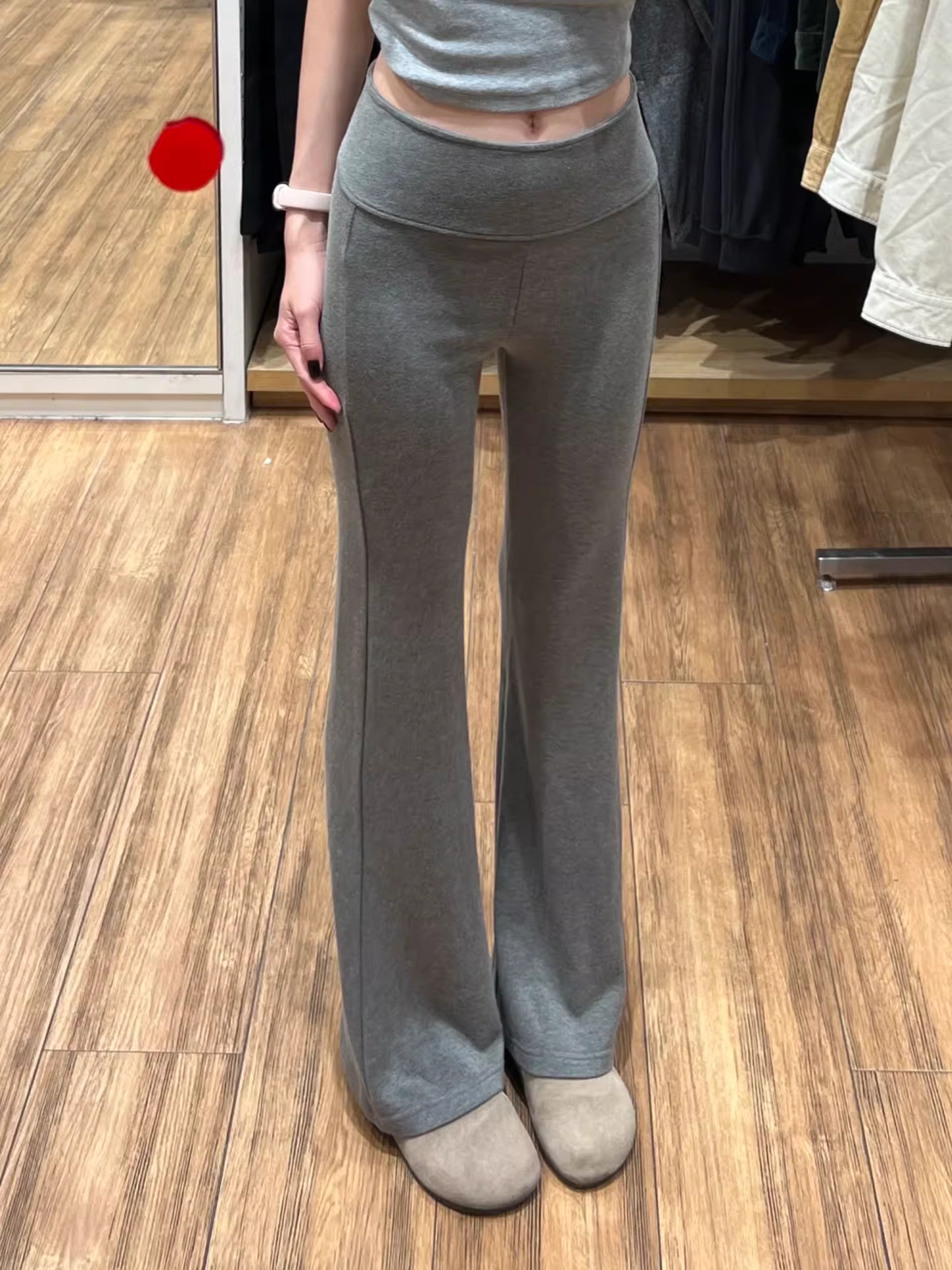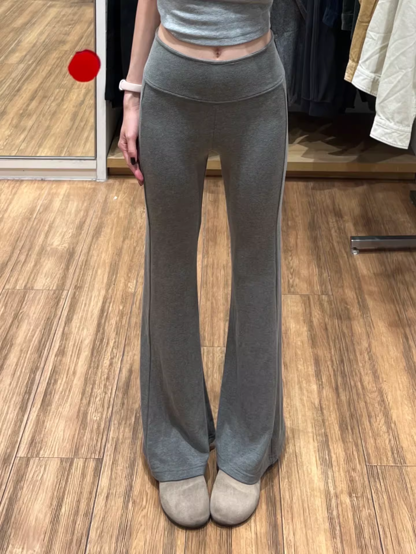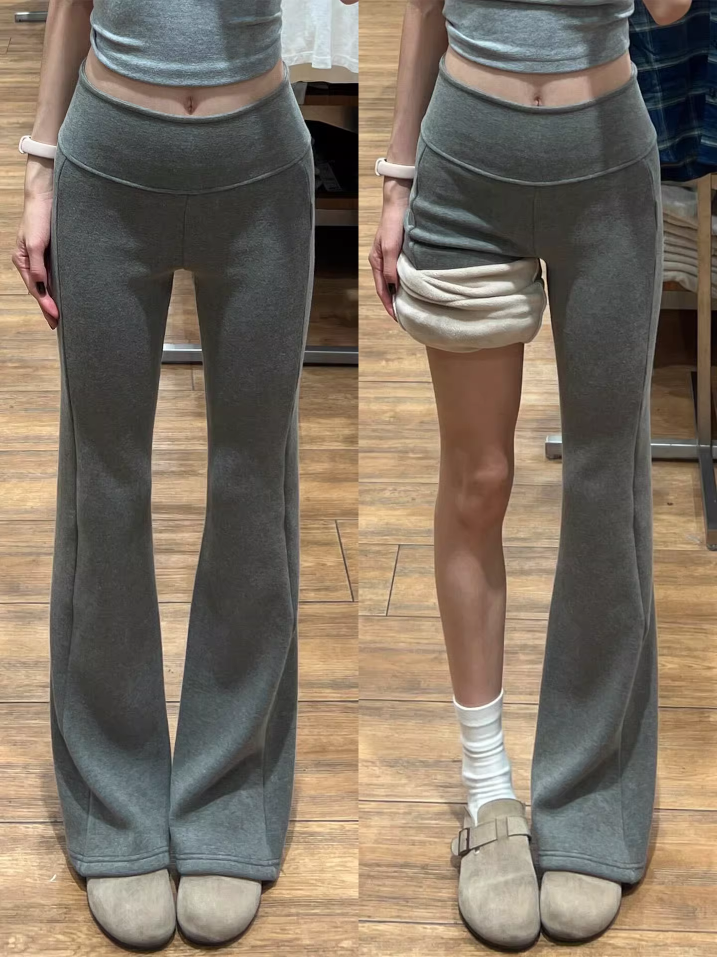 Quần ống loe Lulu dành cho nữ, mùa thu đông, lót lông cừu, cỡ lớn, lưng cao, dáng suôn, tôn dáng, quần thể thao yoga ống chuông, quần thể thao thường ngày