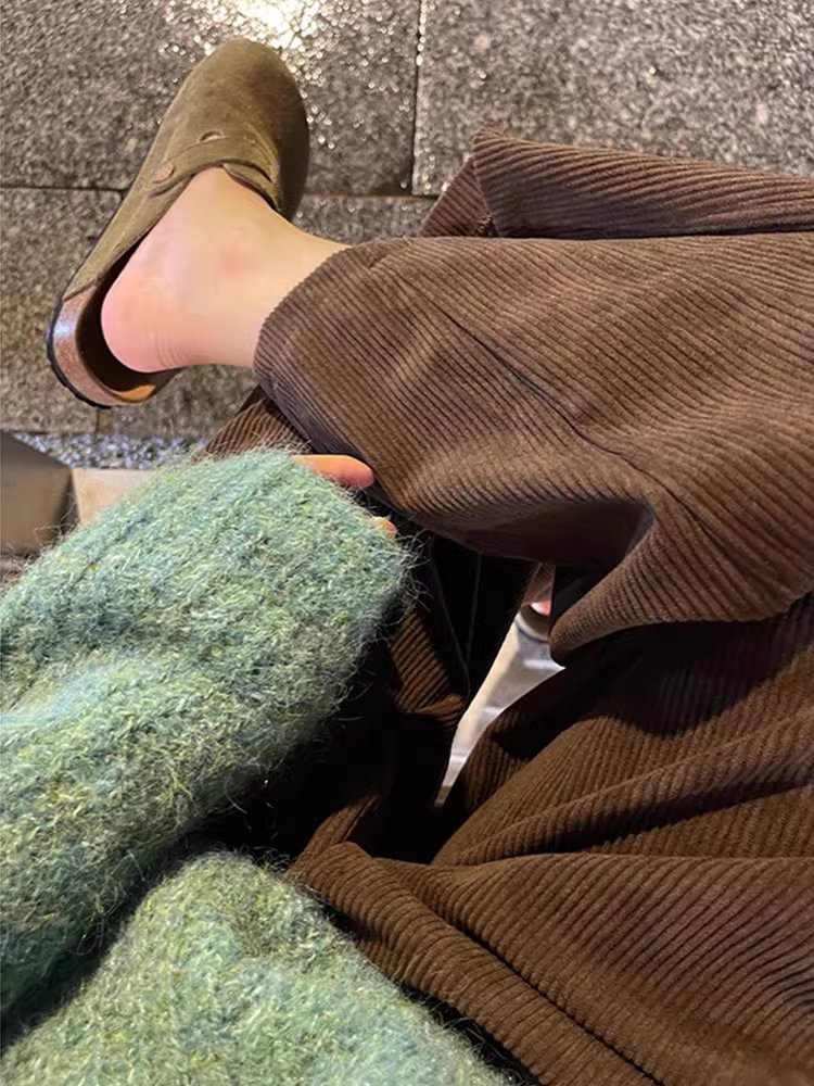 - Quần ống rộng bằng vải nhung màu nâu Melard dành cho nữ, mùa thu đông, lót lông cừu, cỡ lớn, lưng cao, che hông, giảm béo, quần bóng nhỏ nhắn