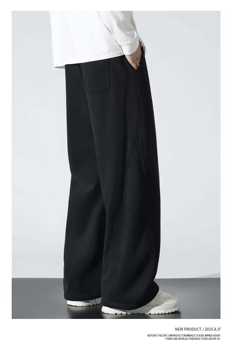 - Quần ống rộng lót lông cừu dày cho nam, phong cách đường phố Mỹ mùa đông, quần thể thao ống rộng, quần ống rộng ấm áp bằng len.