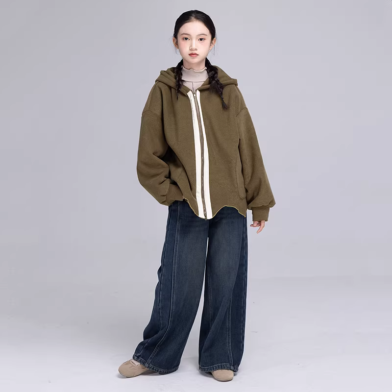 - Quần ống rộng màu xanh cổ điển 25 quần denim ấm áp lót lông cừu cao cấp mùa đông cho bé trai và bé gái quần thường ngày dày dặn lót lông cừu