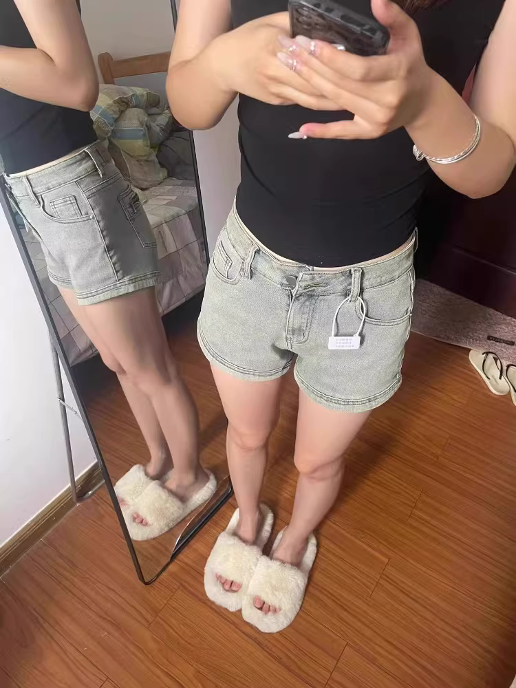 Quần short denim cổ điển kiểu Mỹ hình quả lê dành cho nữ, cỡ lớn mùa hè, lưng cao, co giãn, che hông, quần chữ A giảm béo