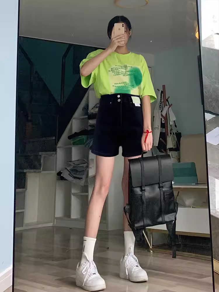 - Quần short denim đen dành cho nữ, kiểu dáng mỏng mùa hè, mẫu mới 2022, cỡ lớn dành cho những cô nàng mũm mĩm, quần ống rộng chữ A tôn dáng.