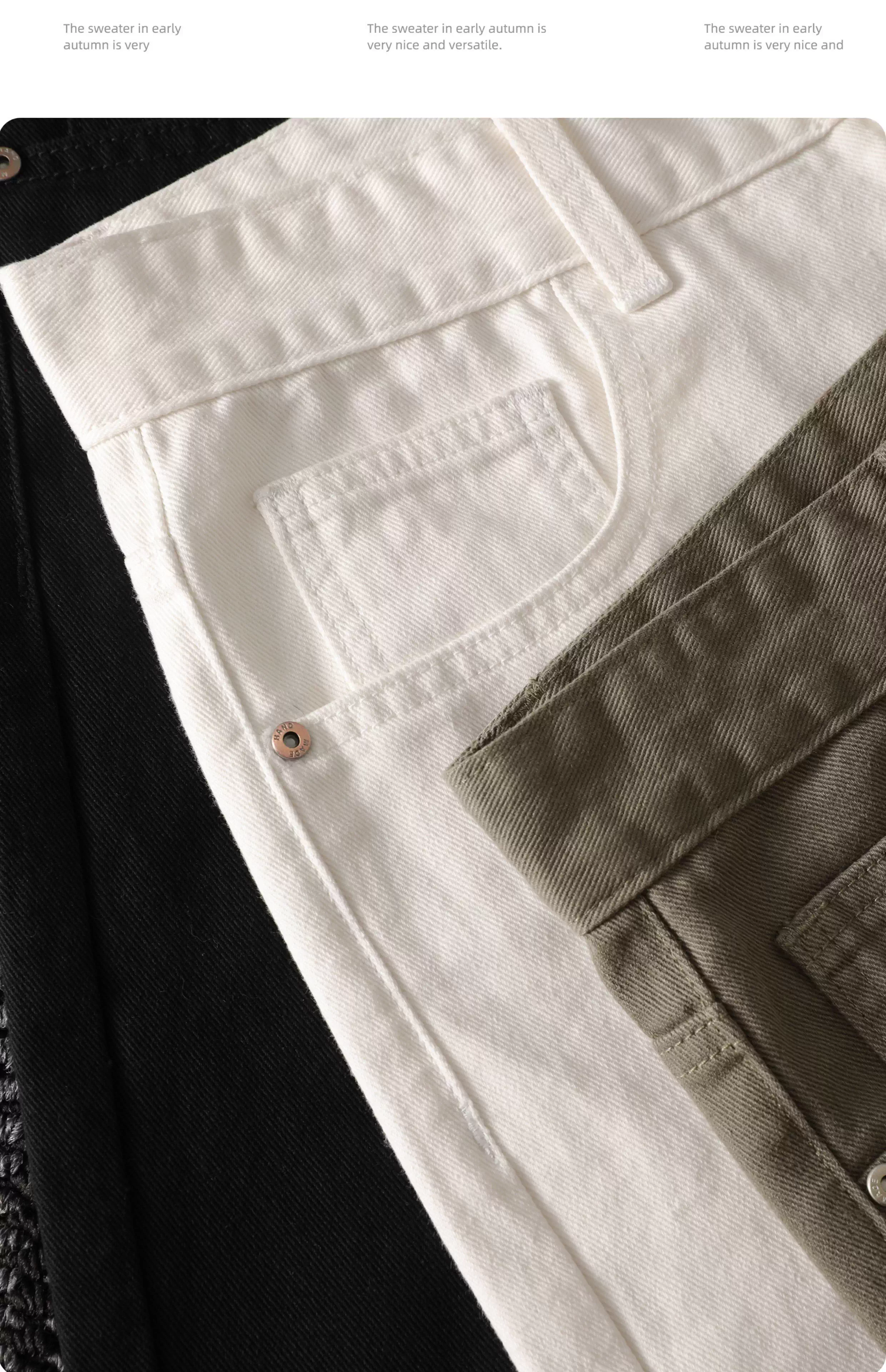 Quần short denim đen trắng chất liệu cotton twill cao cấp JIEYI dành cho nam, phong cách Hàn Quốc đa năng, kiểu dáng thời trang, dài ngang đùi.