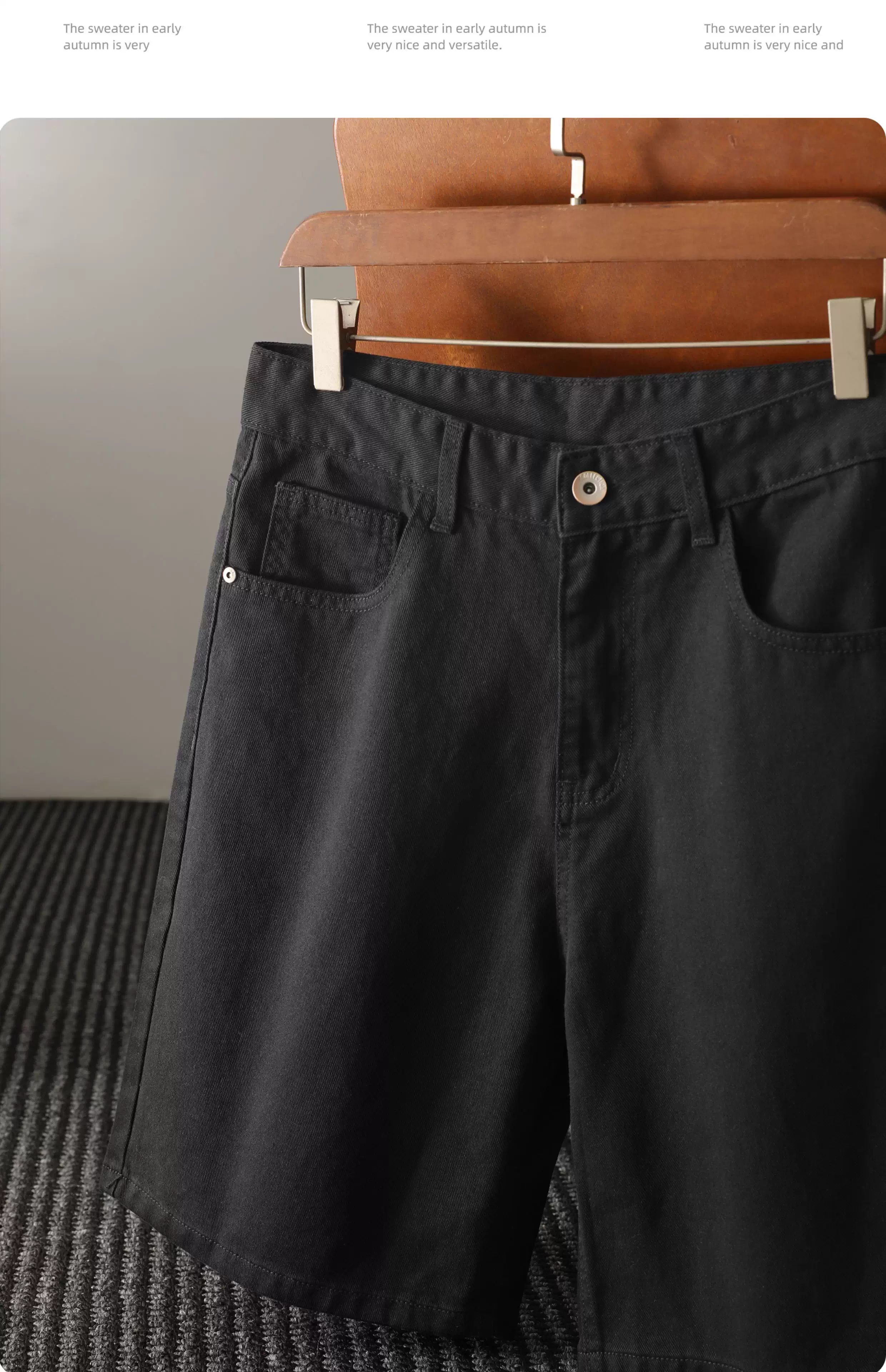 - Quần short denim đen trắng chất liệu cotton twill cao cấp JIEYI dành cho nam, phong cách Hàn Quốc đa năng, kiểu dáng thời trang, dài ngang đùi.