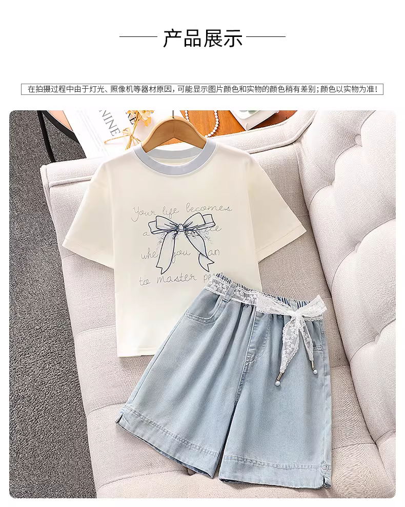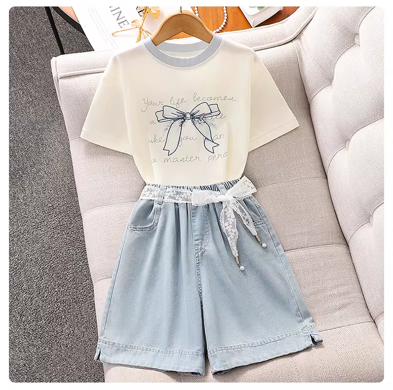 Quần short denim nữ mùa hè 2025 kiểu mới, chất liệu mỏng, dáng lửng, dành cho các bé gái lớn tuổi, mặc hè, quần áo ngoài cho trẻ em