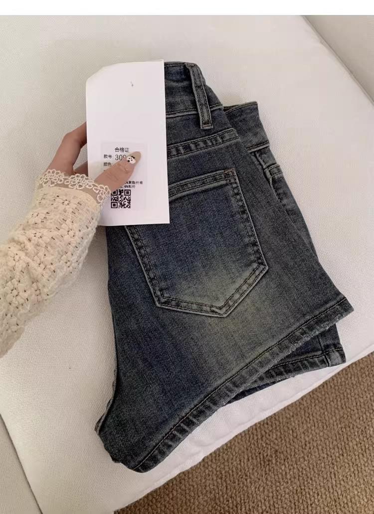 - Quần short denim retro Mỹ dành cho nữ mùa hè 2025, size lớn, cạp cao, co giãn, tôn dáng, kiểu dáng chữ A, quần short ngắn