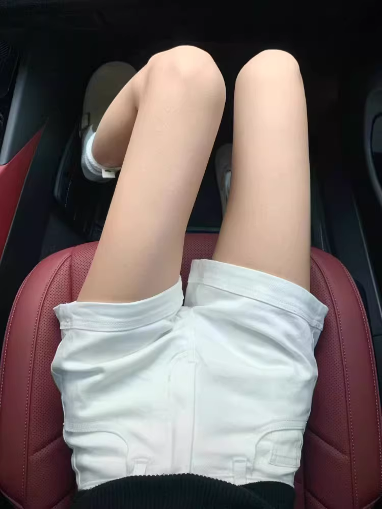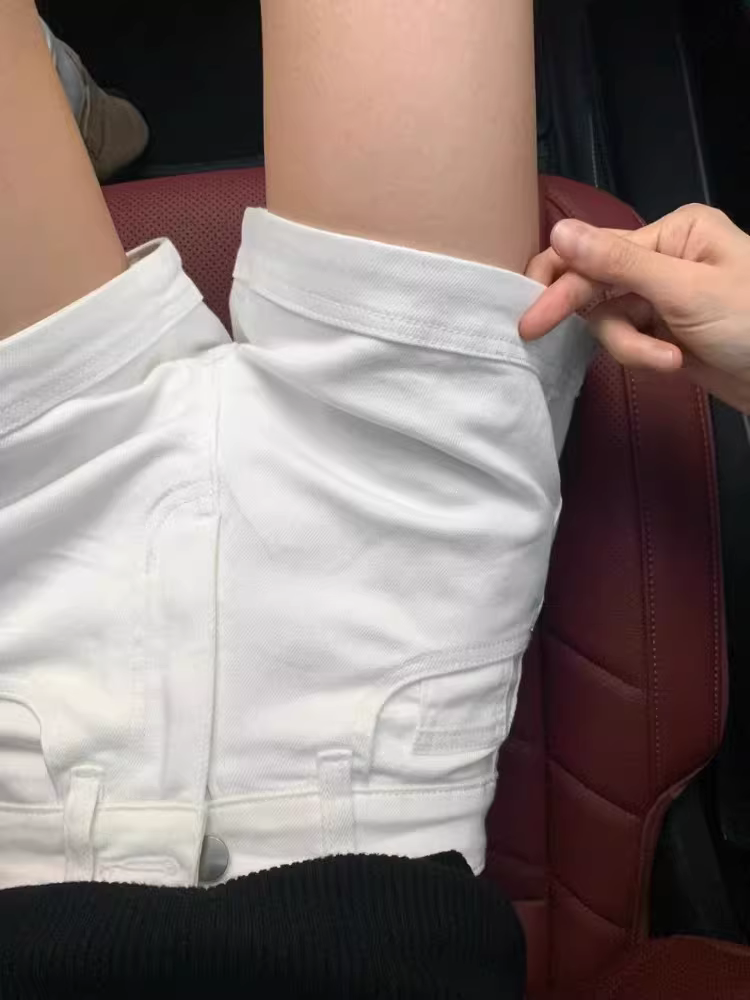 - Quần short denim trắng nữ mùa hè 2025, size lớn, cạp cao, co giãn, che hông, tôn dáng, kiểu dáng chữ A, quần short ngắn