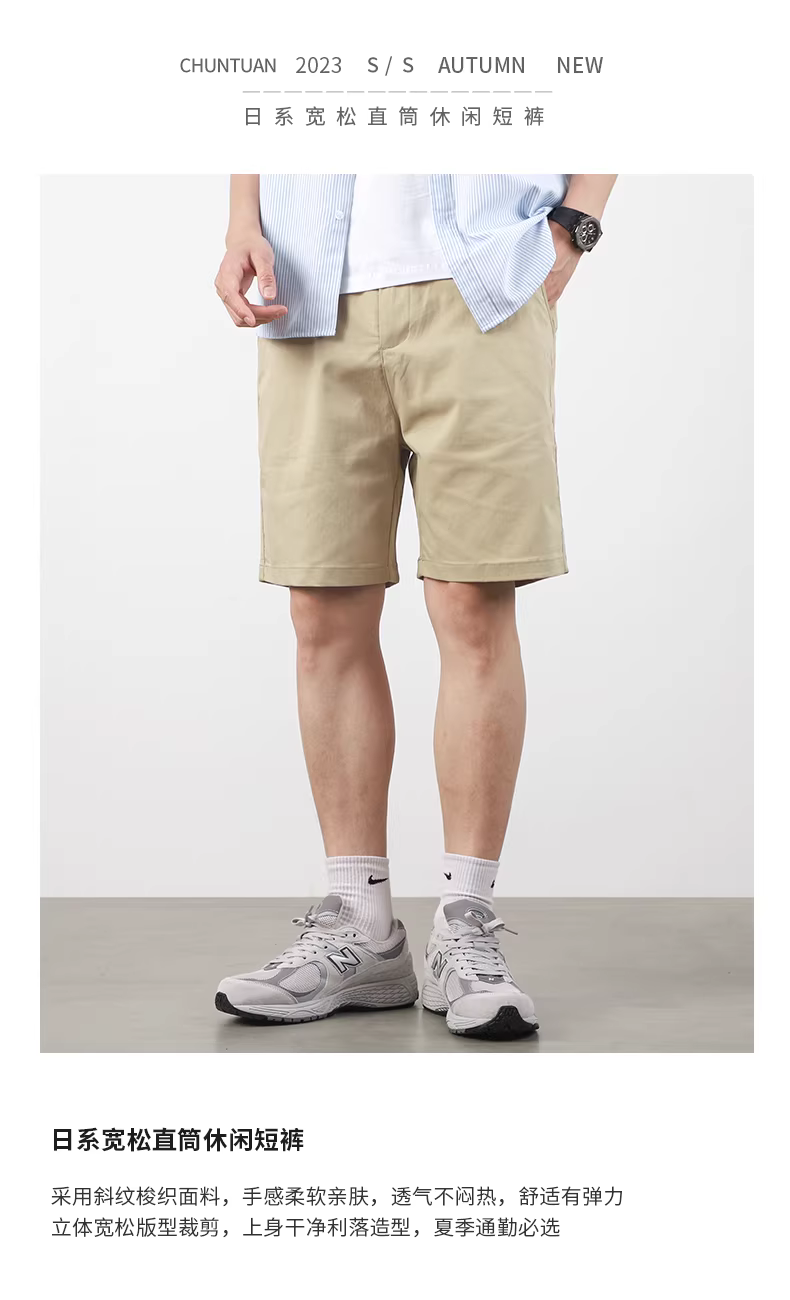 - Quần short kaki kiểu Nhật nguyên chất dành cho nam, quần dài vừa phải dáng rộng thường ngày mùa hè, quần short thể thao năm điểm mới năm 2023.