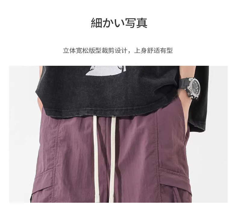 Quần short làm việc bằng vải lụa băng mát mẻ dành cho nam giới, quần short năm điểm kiểu dáng thể thao thông thường, mỏng, nhanh khô, kiểu Mỹ.