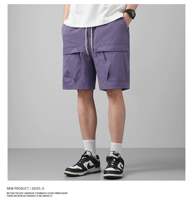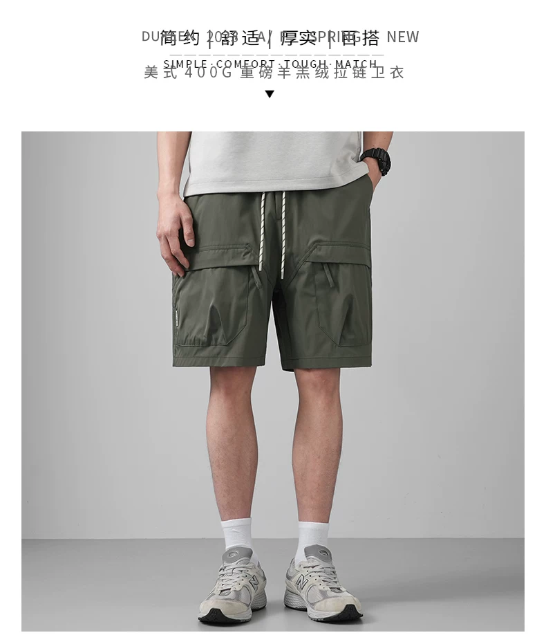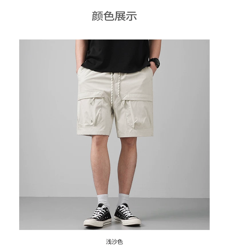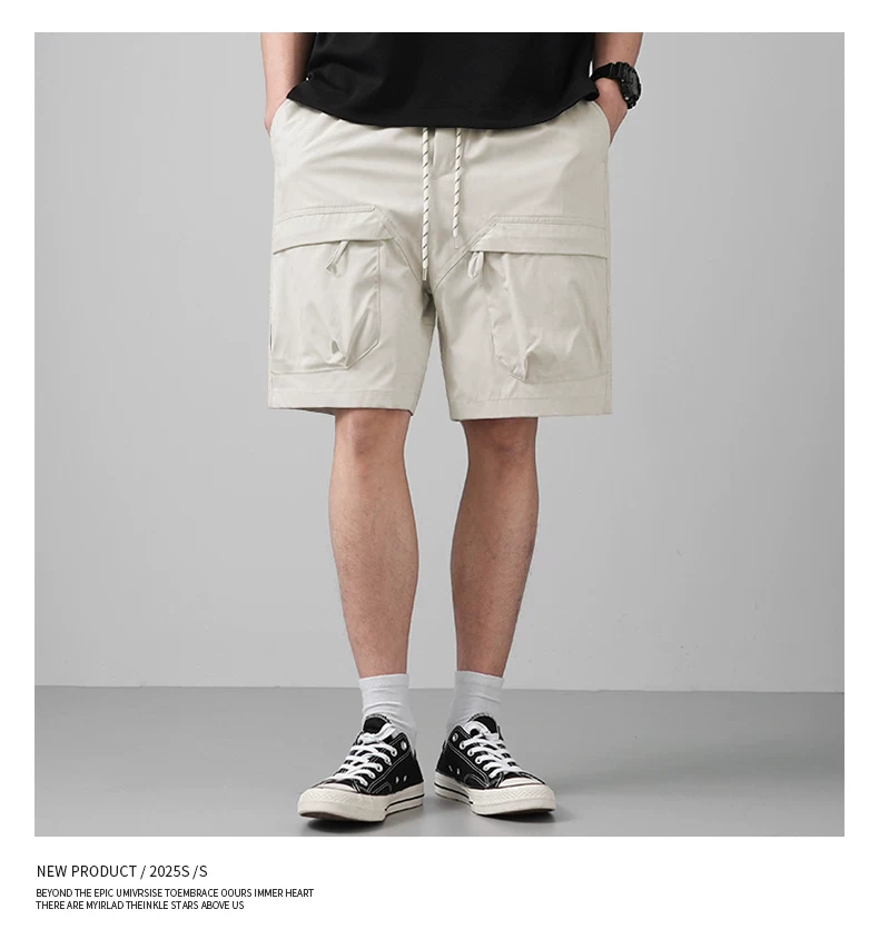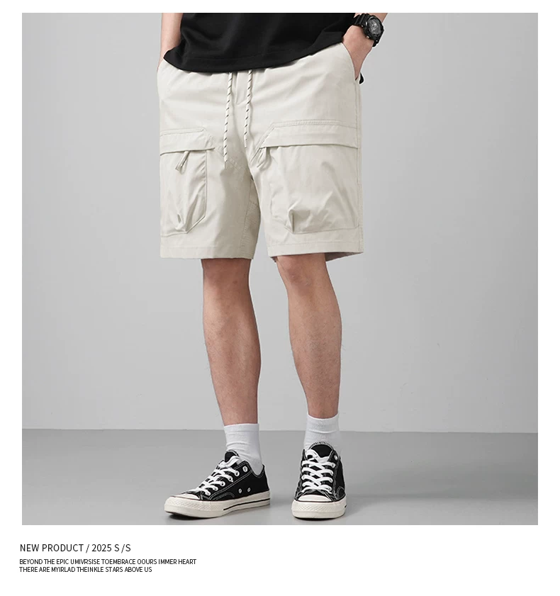 - Quần short làm việc chống nước chức năng OMZM dành cho nam, quần short dài vừa phải dáng rộng phong cách Mỹ mùa hè, quần short thể thao bóng rổ.