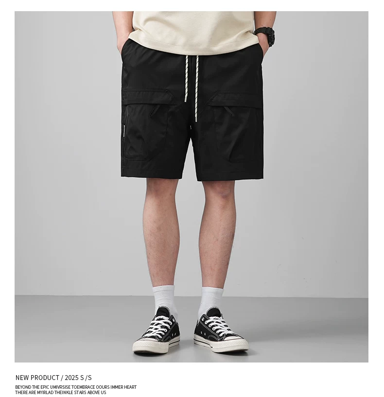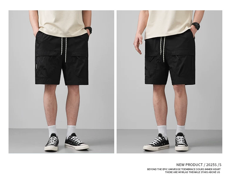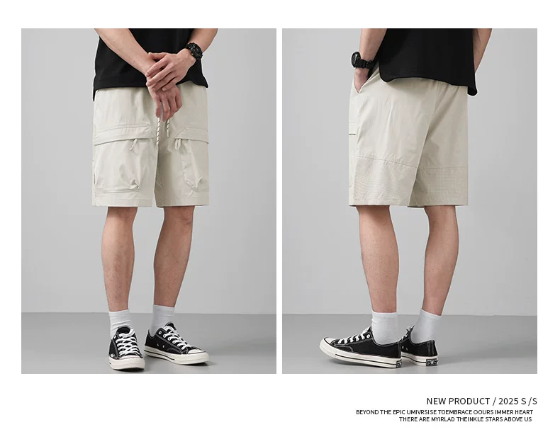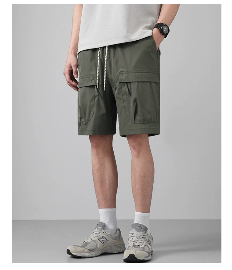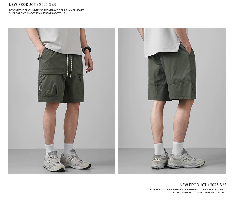 - Quần short làm việc chống nước chức năng OMZM dành cho nam, quần short dài vừa phải dáng rộng phong cách Mỹ mùa hè, quần short thể thao bóng rổ.
