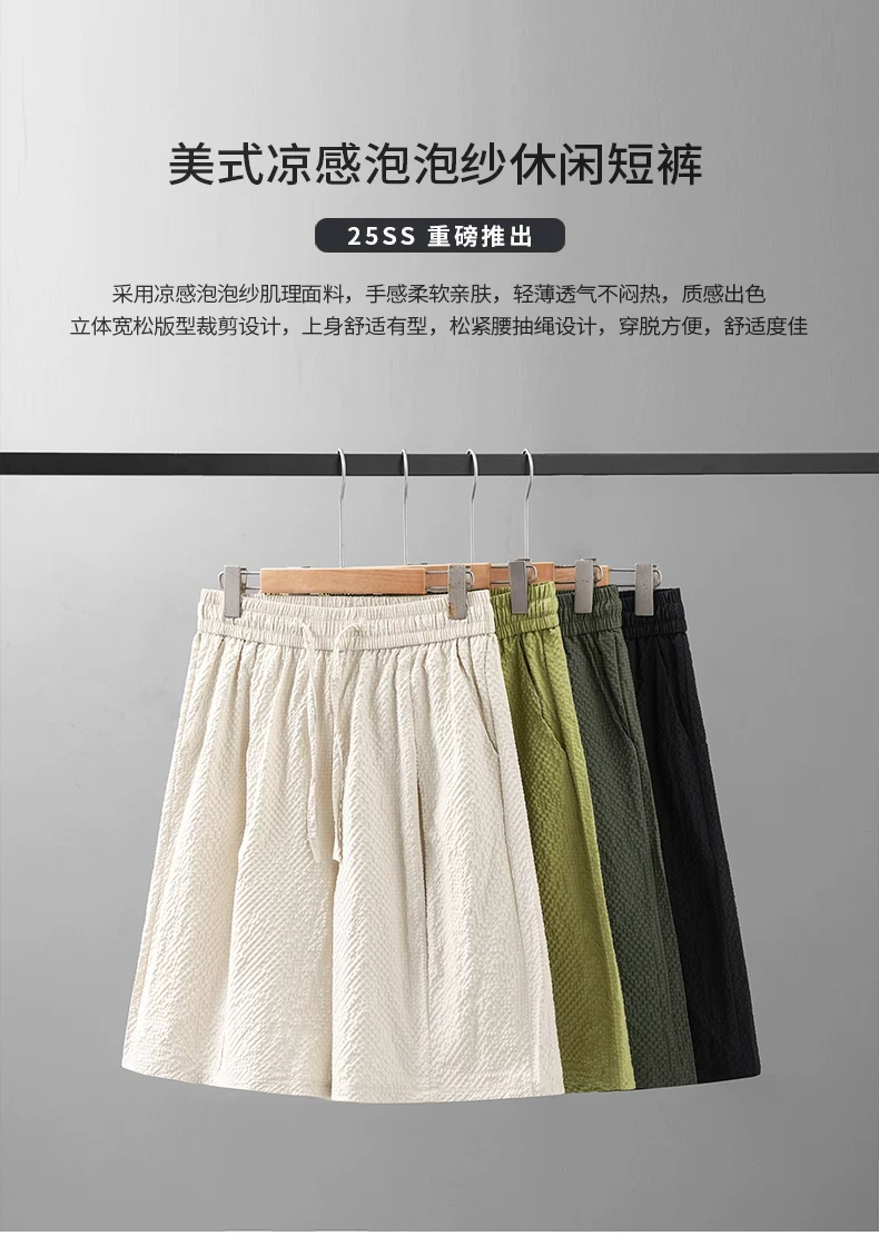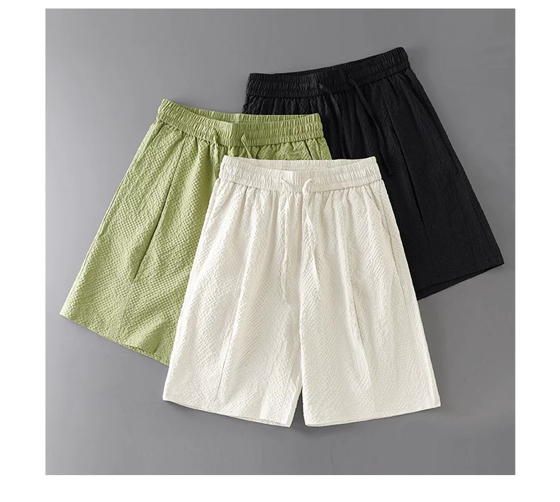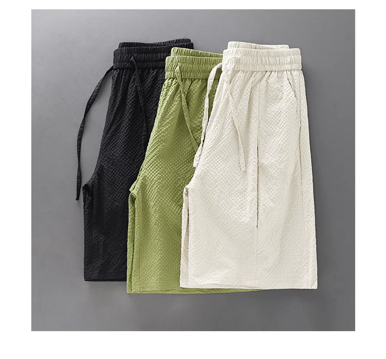 Quần short vải gạc nhẹ OMZM dành cho nam, quần short thể thao dài vừa phải, thoáng khí, thoáng mát, nhanh khô, chất liệu lụa băng mùa hè.