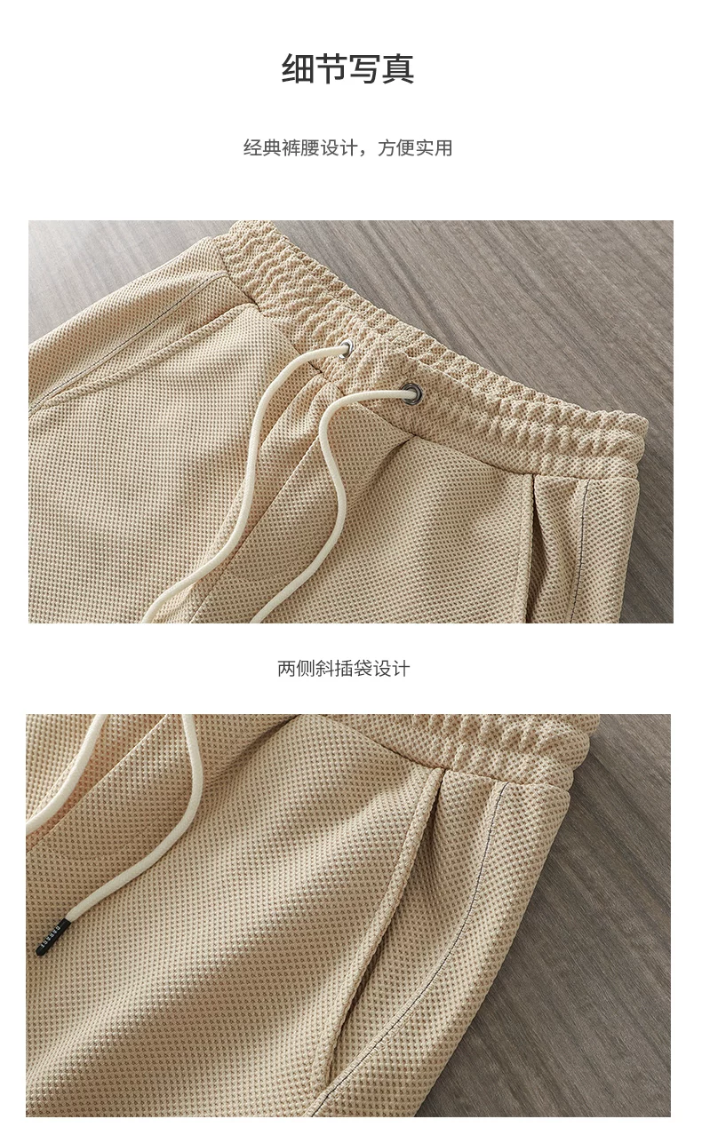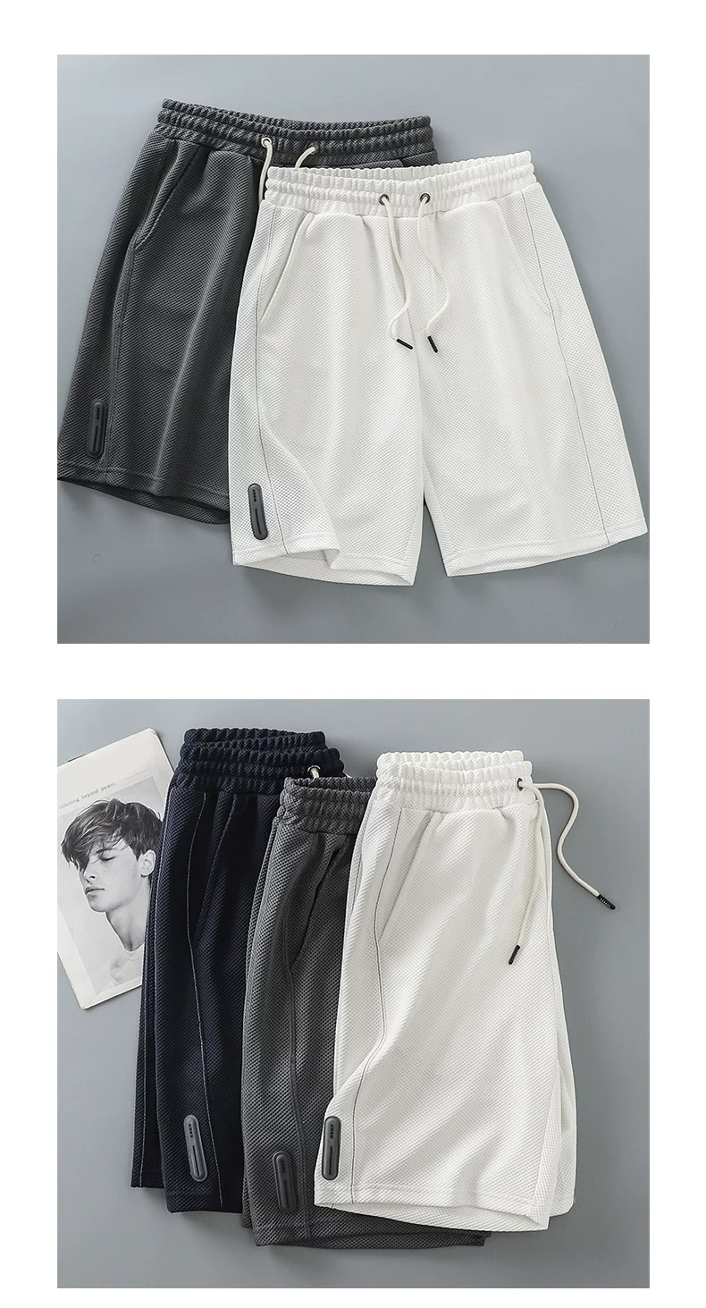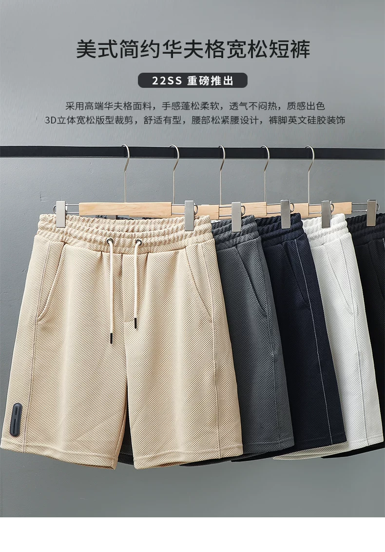 - Quần short waffle hạng nặng dành cho nam, kiểu dáng mỏng mùa hè 2023, sản phẩm hot của người nổi tiếng trên mạng, dáng rộng, quần short thể thao nhanh khô.