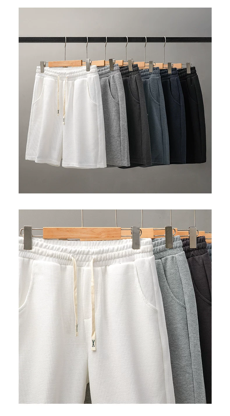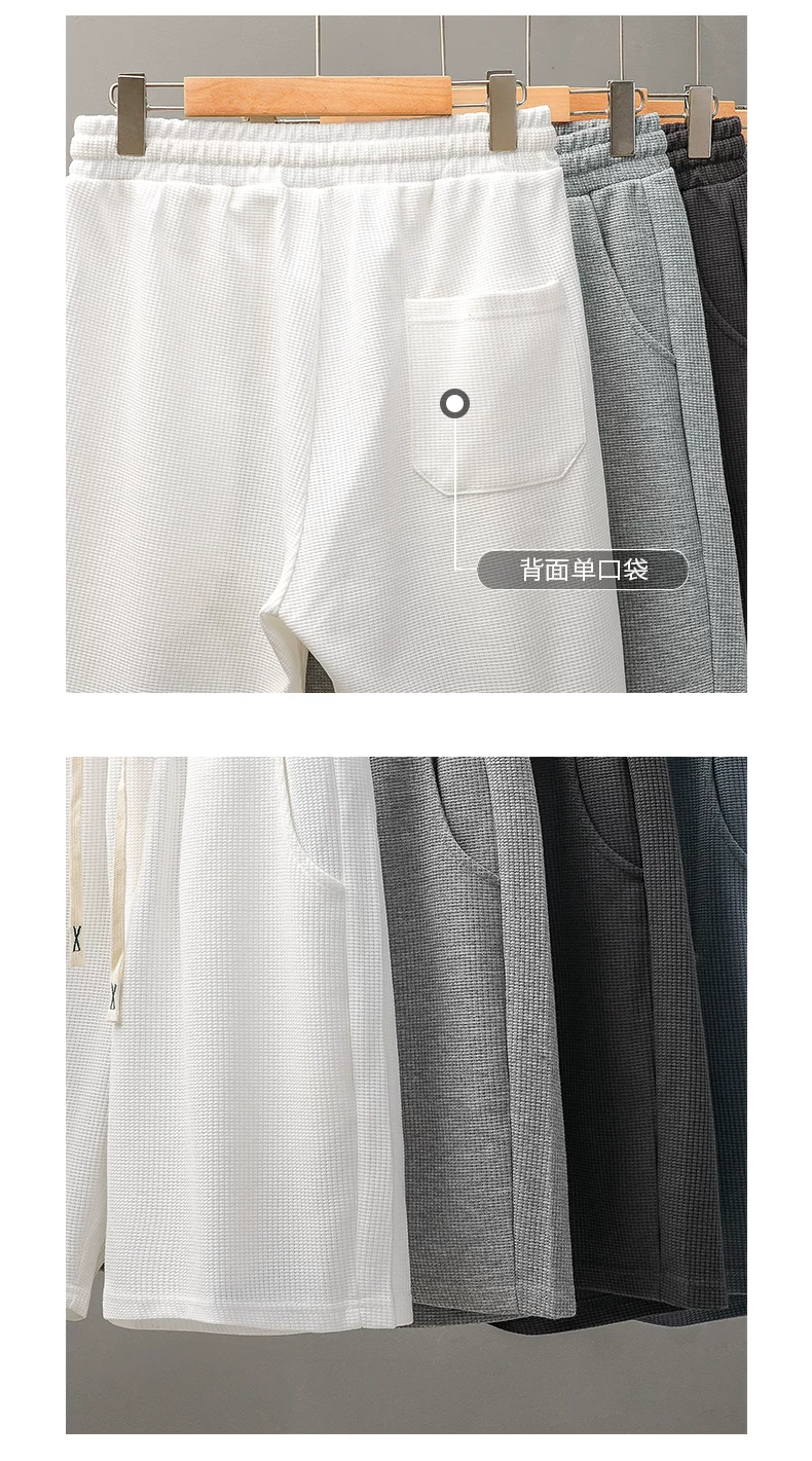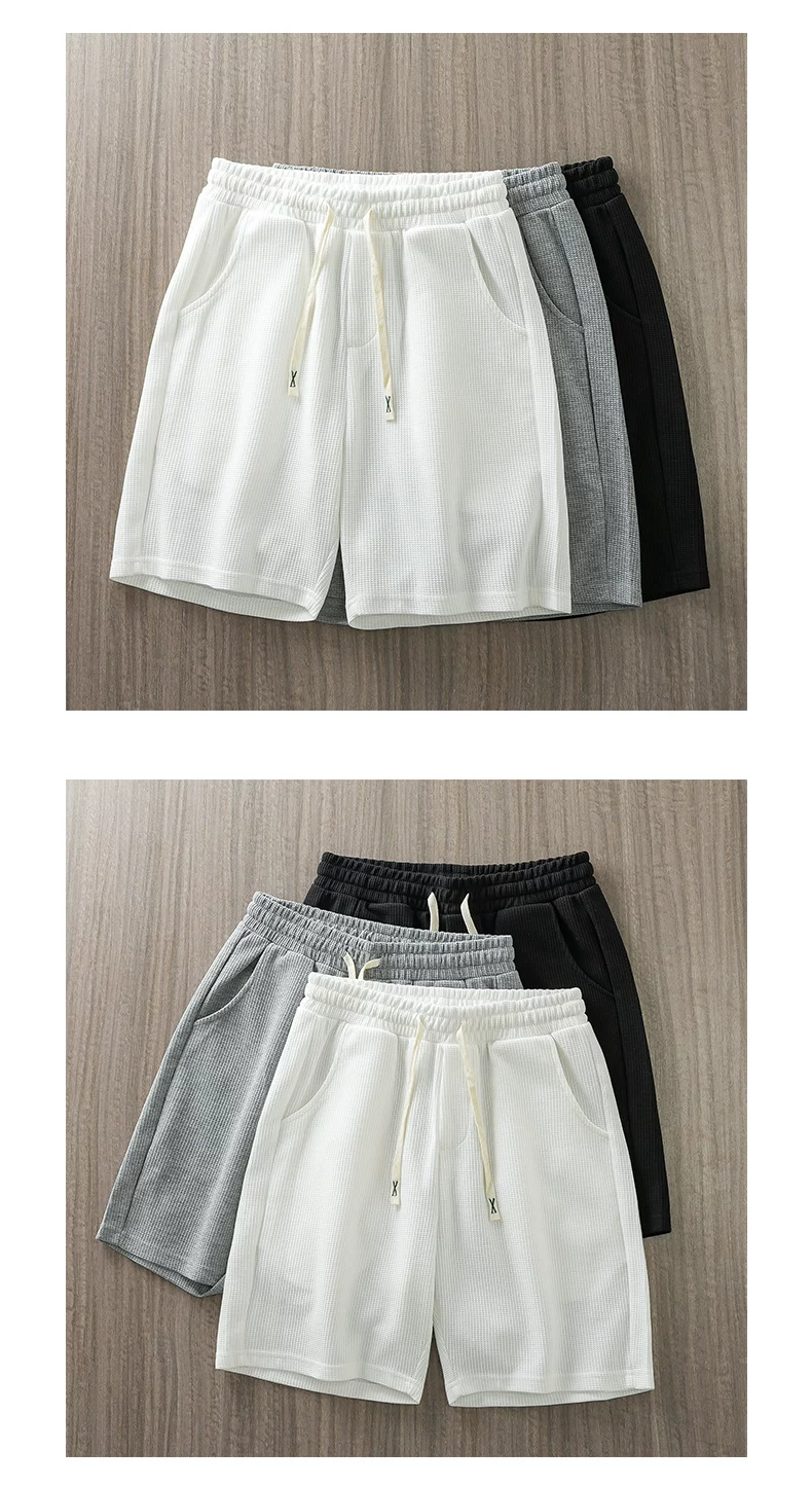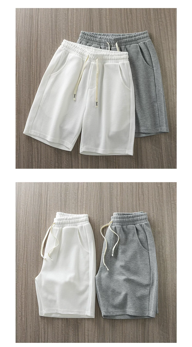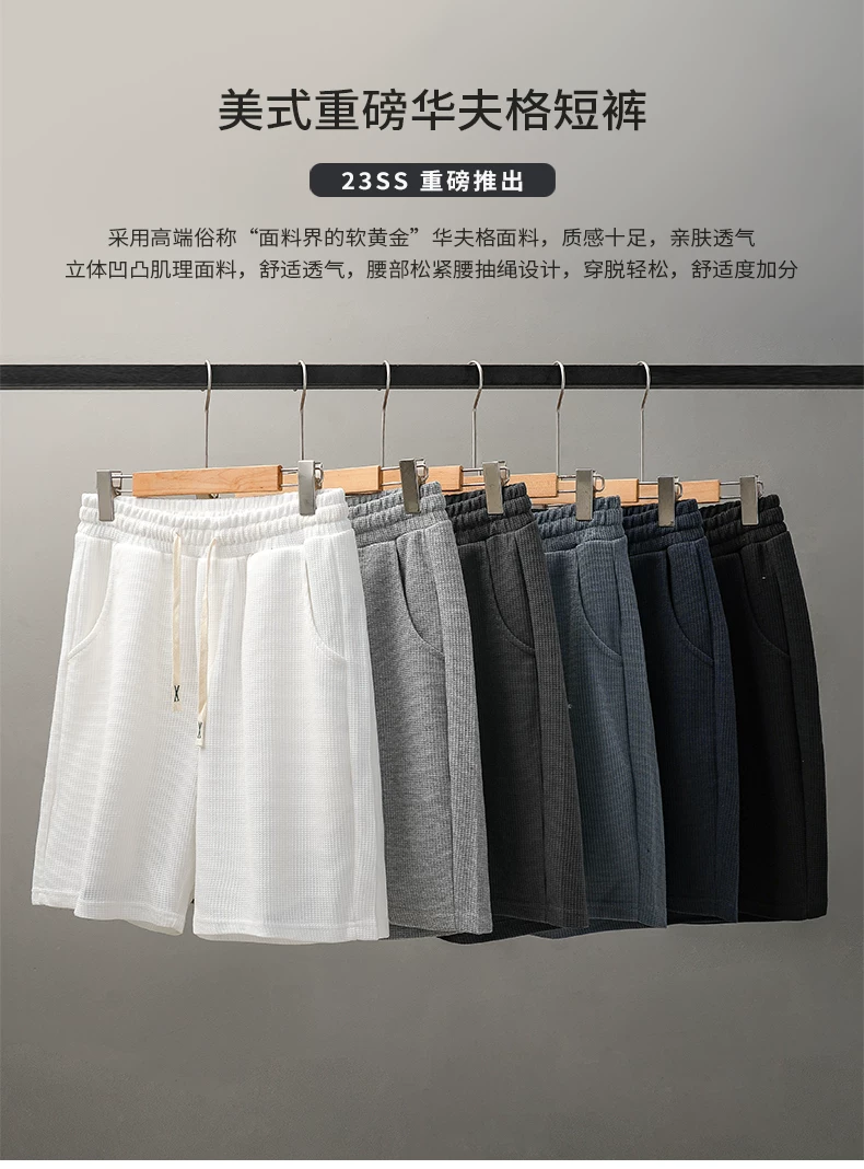 Quần short waffle kiểu Mỹ dành cho nam, quần short thể thao rộng rãi thoáng khí hợp thời trang mùa hè, quần short bóng rổ thường ngày năm phần