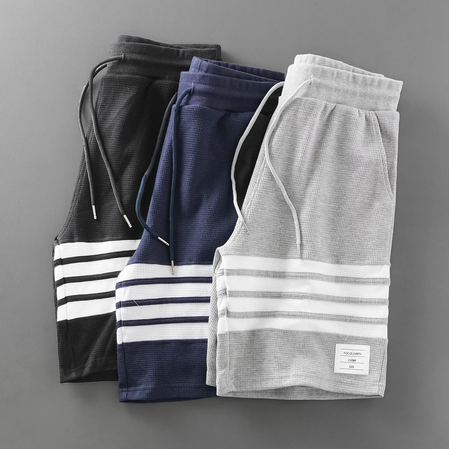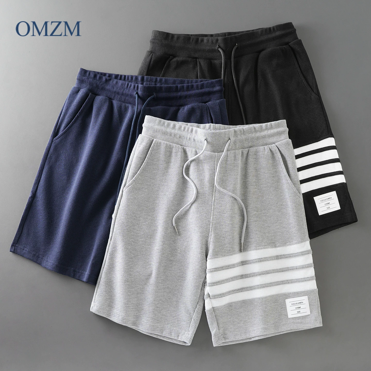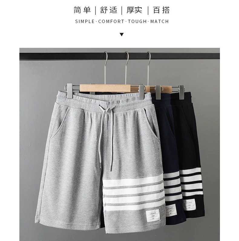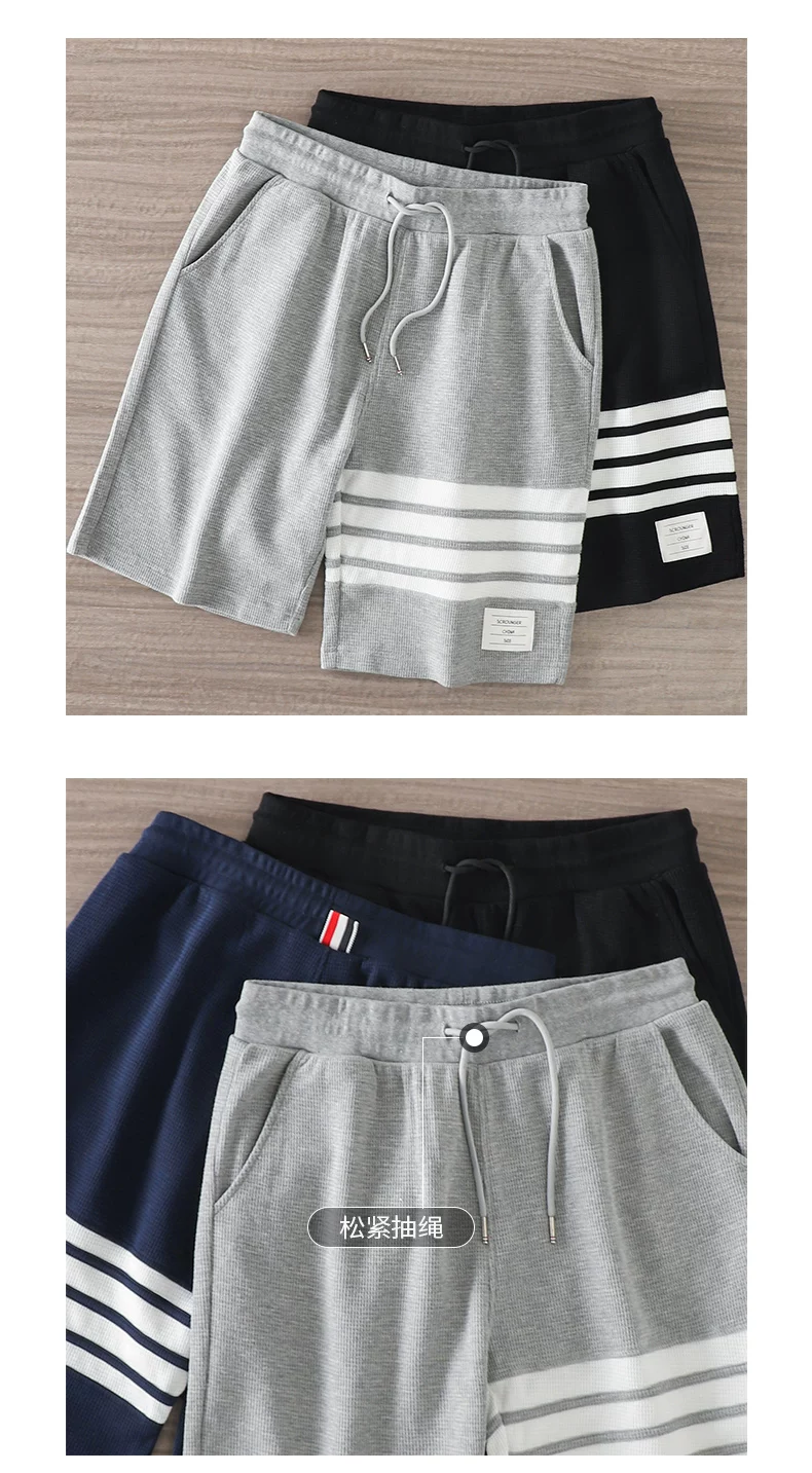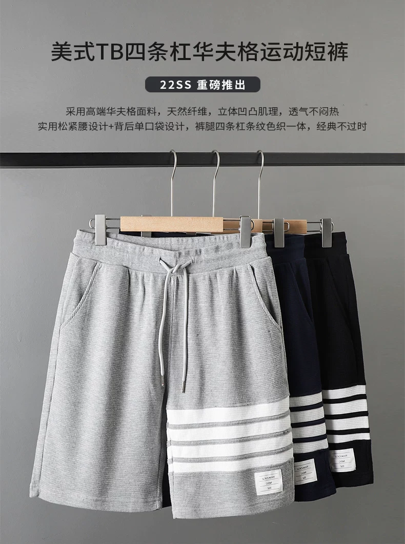 - Quần short waffle kiểu Mỹ OMZM dành cho nam thể thao mùa hè quần short dài vừa phải nhanh khô quần short thể dục bốn sọc