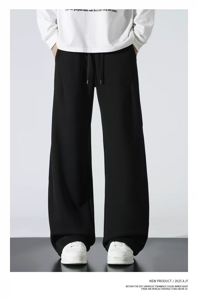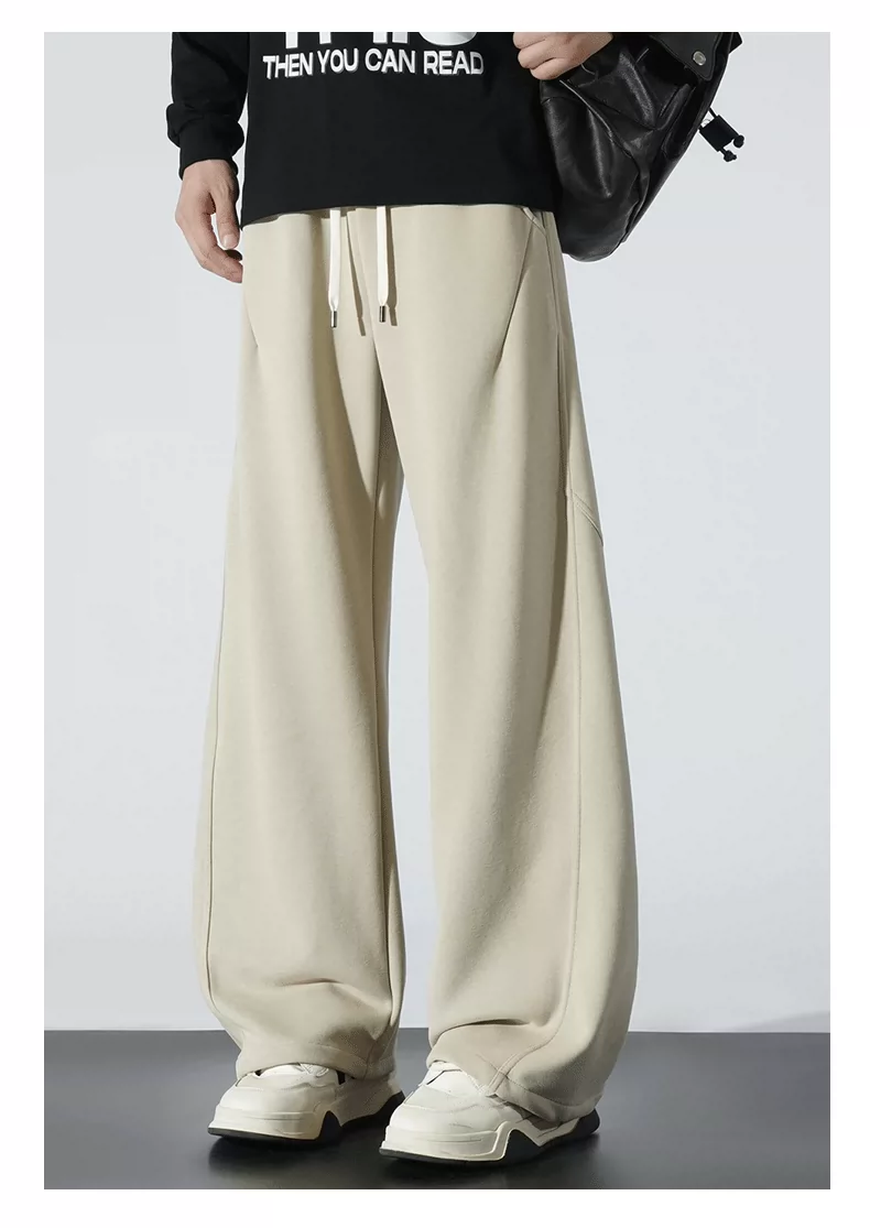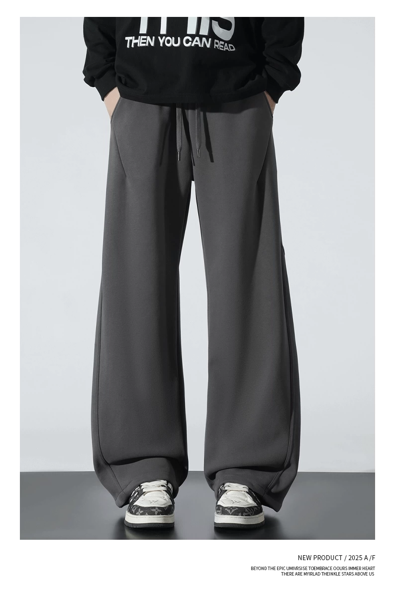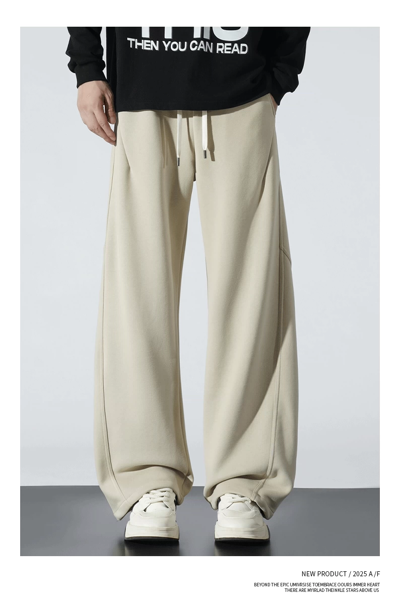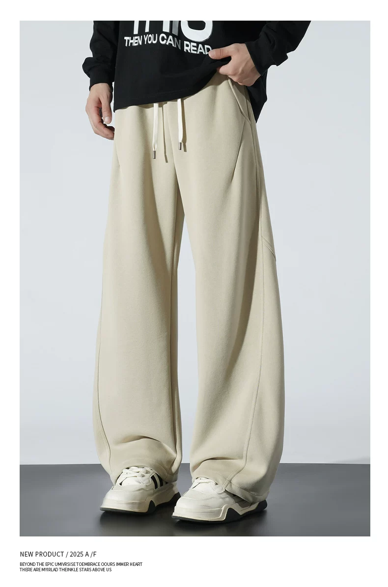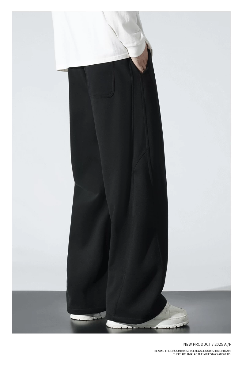 Quần thể thao kiểu Mỹ OMZM dành cho nam, quần thường ngày dày dặn ấm áp mùa đông, quần ống rộng màu trơn kiểu dáng đơn giản.
