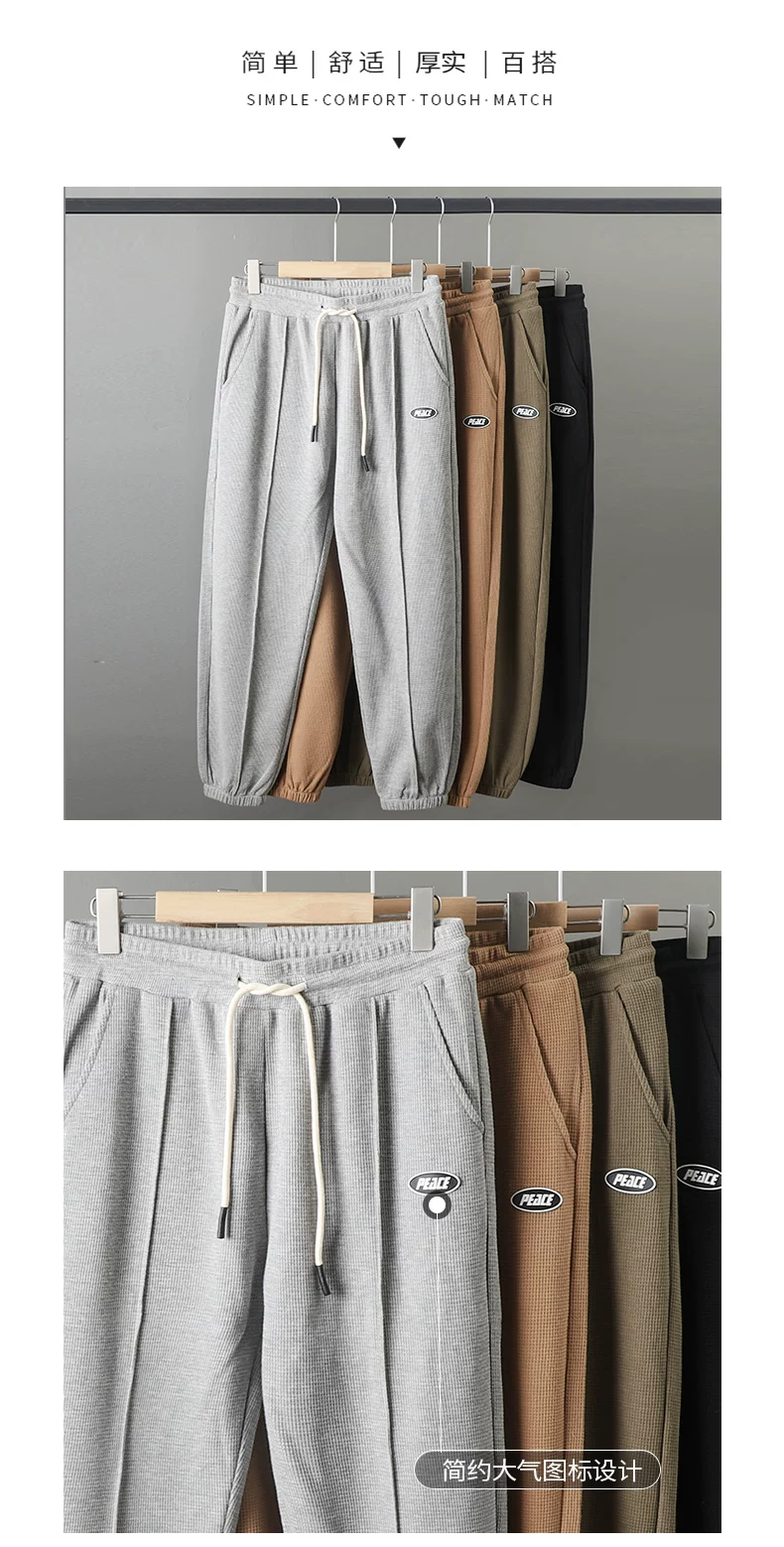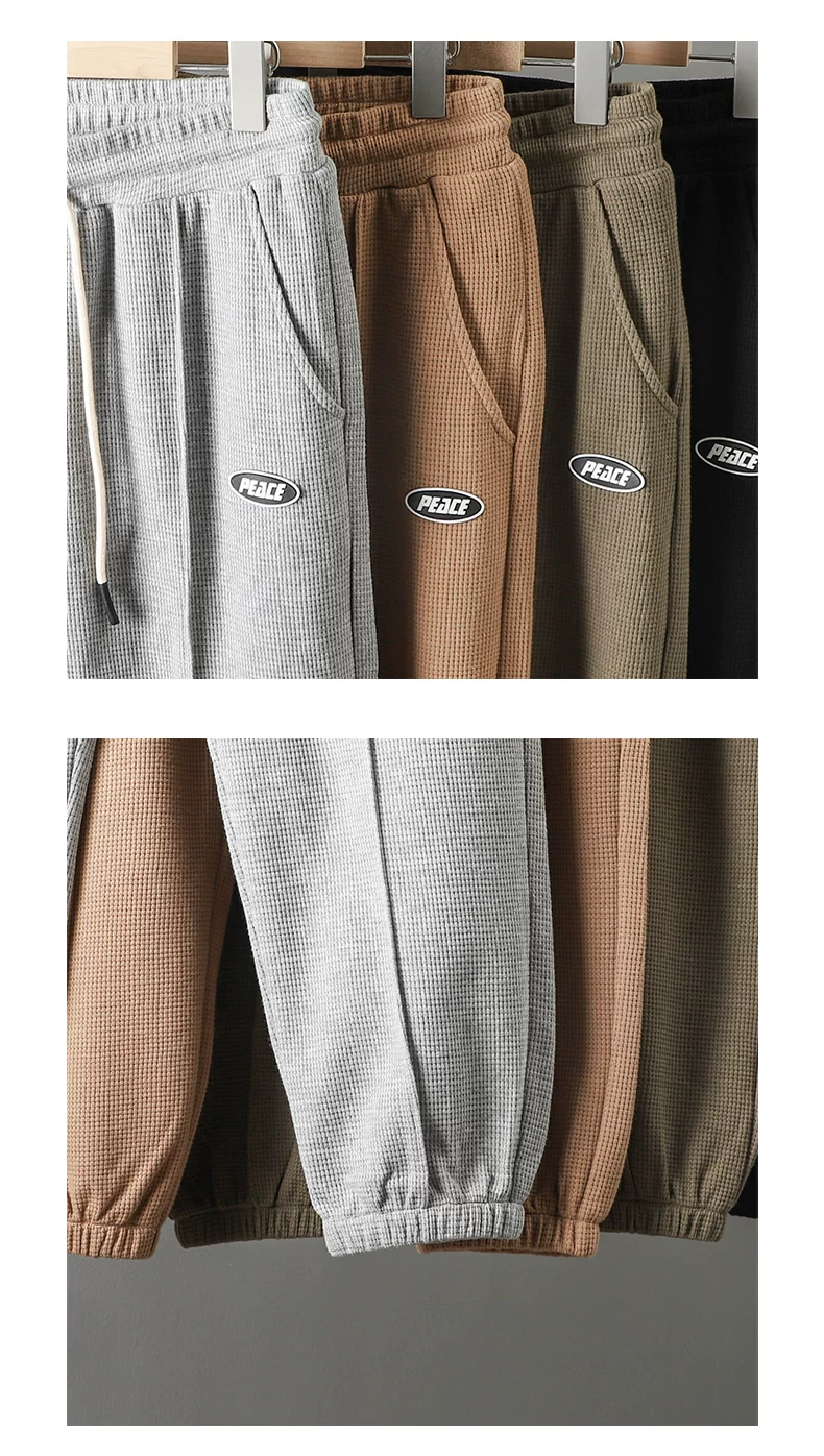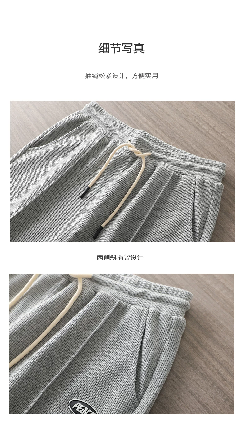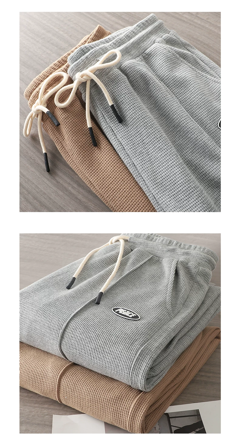 - Quần thể thao kiểu waffle hạng nặng kiểu Mỹ dành cho nam, phong cách mùa thu, thời trang đường phố Trung Quốc, quần jogger rộng rãi, quần thể thao màu xám