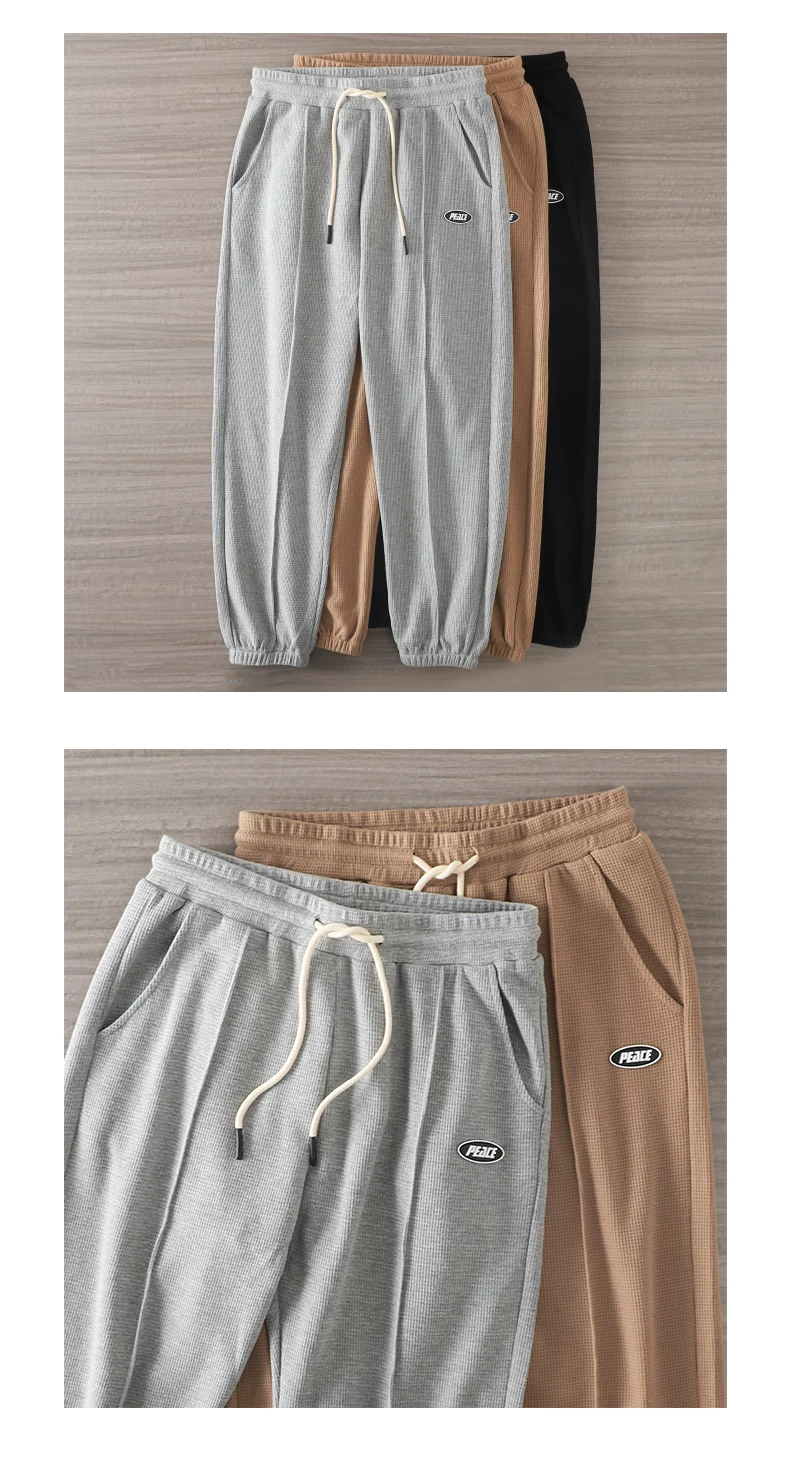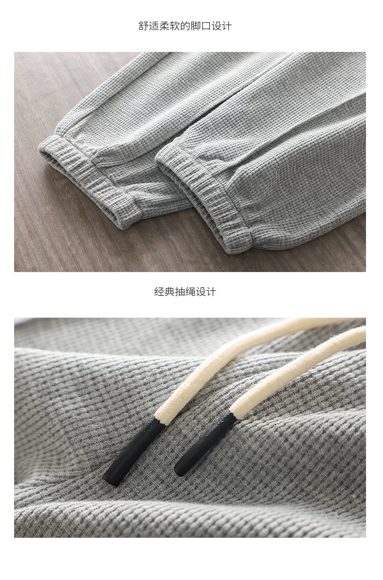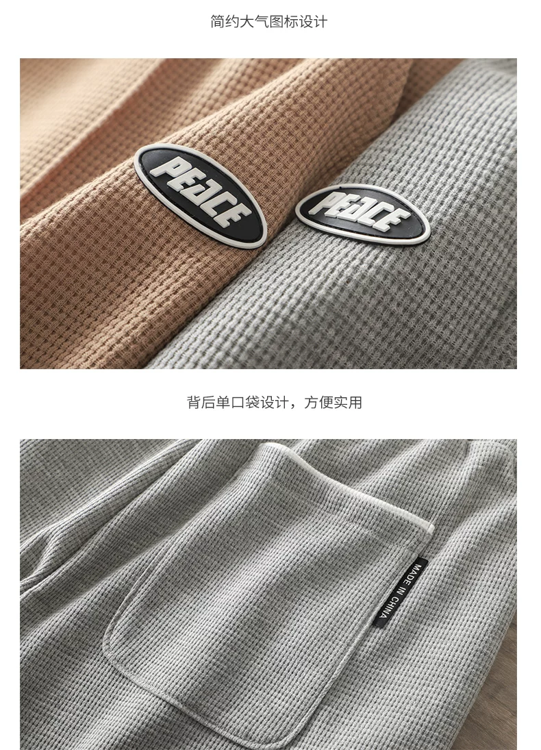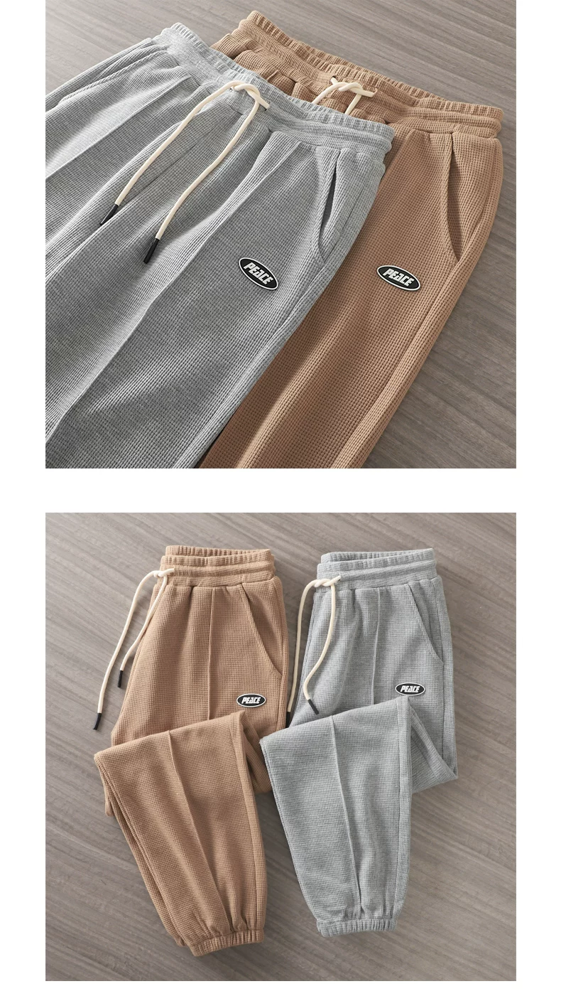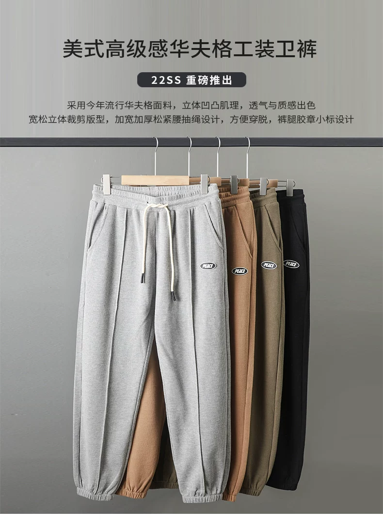 - Quần thể thao kiểu waffle hạng nặng kiểu Mỹ dành cho nam, phong cách mùa thu, thời trang đường phố Trung Quốc, quần jogger rộng rãi, quần thể thao màu xám