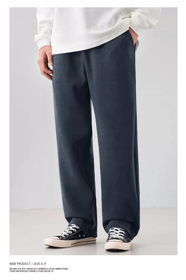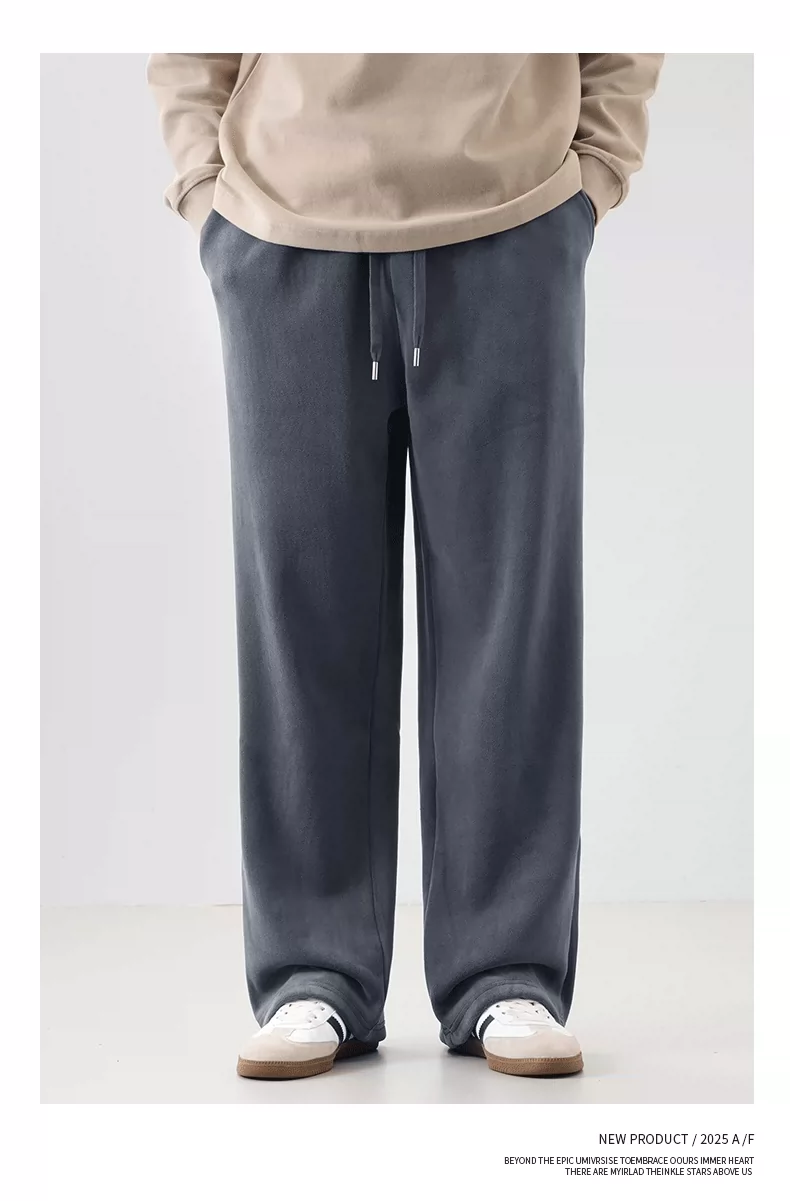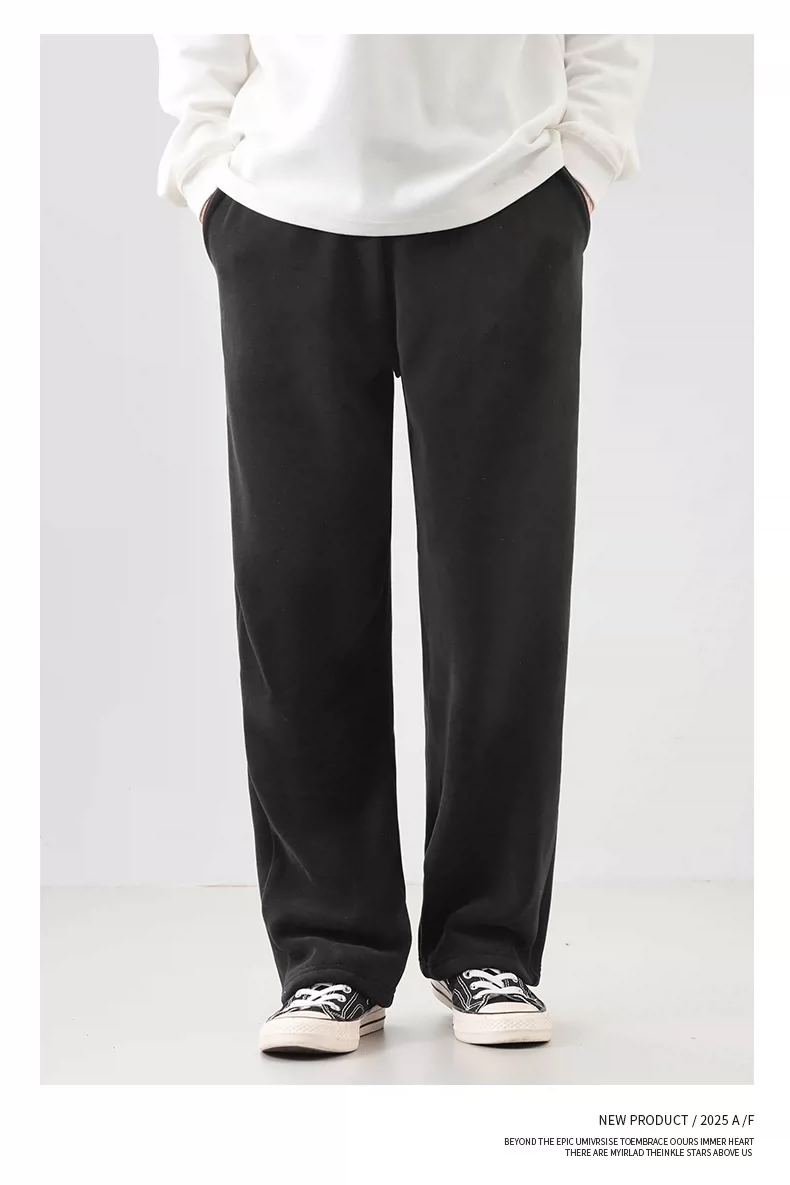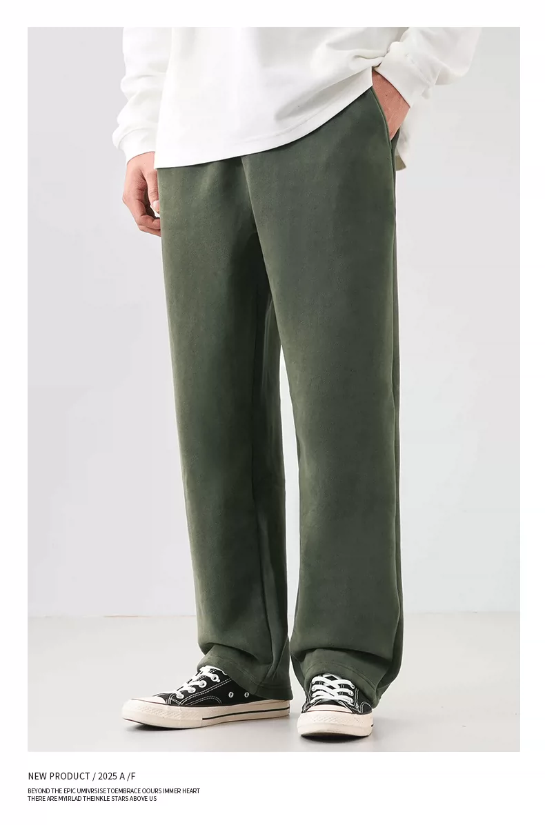 Quần thể thao lông cừu hạng nặng kiểu Mỹ OMZM dành cho nam, quần thường ngày dày dặn lót lông cừu mùa đông, quần ống rộng dáng thẳng rộng.