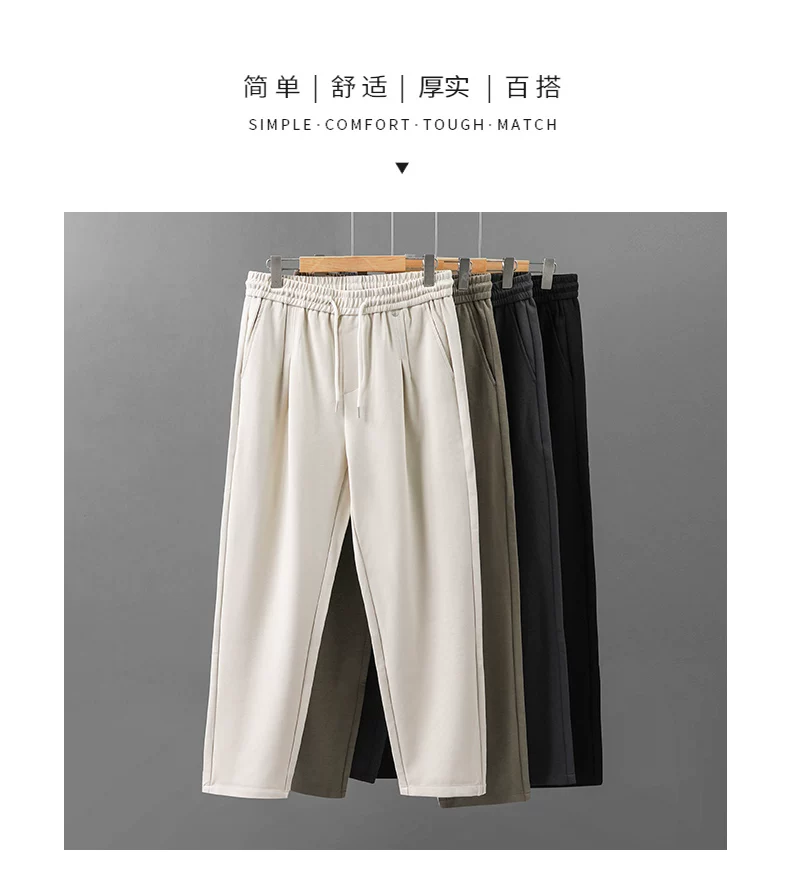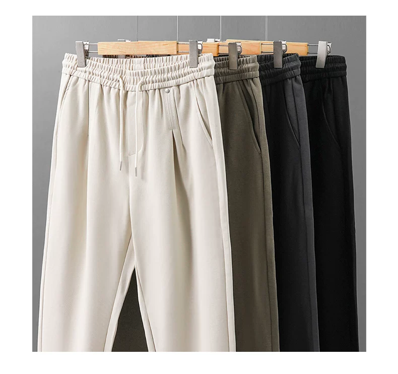 - Quần thể thao lyocell hạng nặng OMZM dành cho nam, quần thể thao phong cách Mỹ mùa thu đông, quần ống rộng đơn giản màu trơn đơn giản