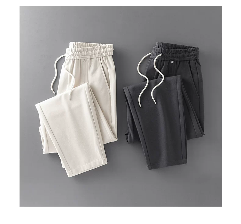 Quần thể thao lyocell hạng nặng OMZM dành cho nam, quần thể thao phong cách Mỹ mùa thu đông, quần ống rộng đơn giản màu trơn đơn giản