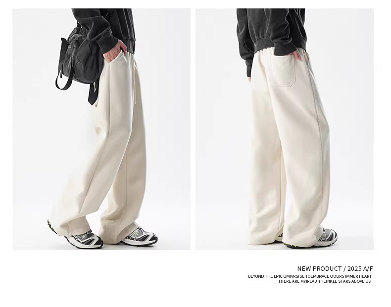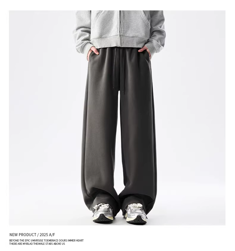 Quần thể thao nam 400G dáng thẳng, chất liệu nỉ lót lông mùa đông, kiểu dáng thể thao Mỹ, quần lửng rộng rãi, thoải mái