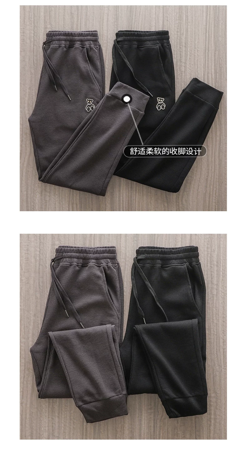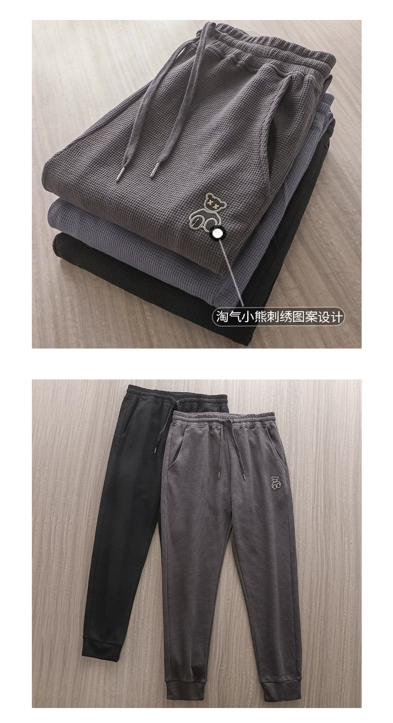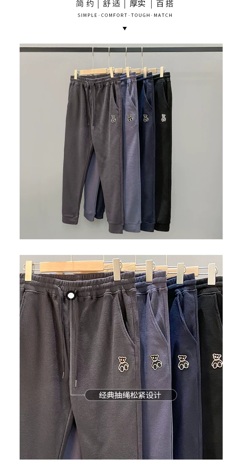 - Quần thể thao nam chất liệu vải waffle thêu hình gấu kiểu Mỹ, mùa xuân thu, dáng rộng, dây rút mỏng, cảm giác cao cấp, quần jogger thường ngày.