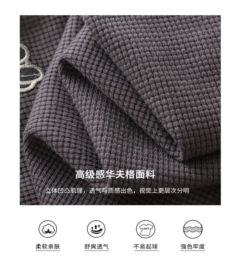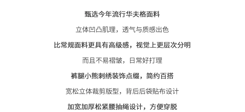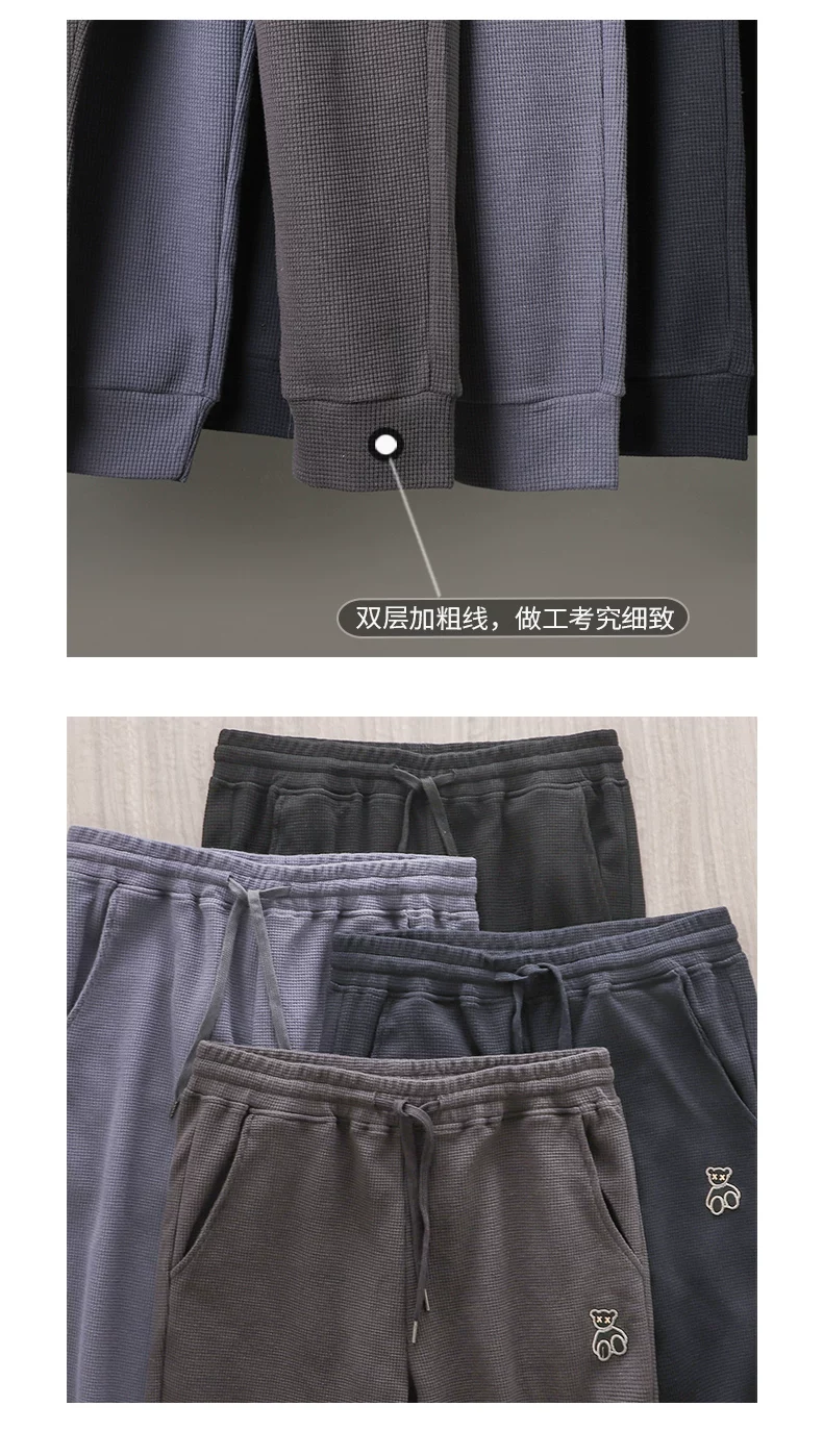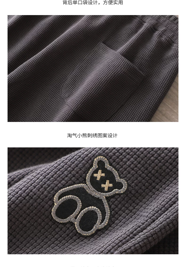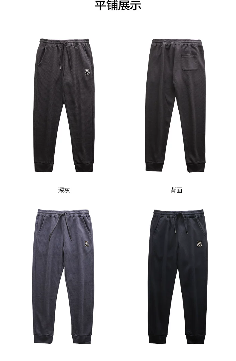 - Quần thể thao nam chất liệu vải waffle thêu hình gấu kiểu Mỹ, mùa xuân thu, dáng rộng, dây rút mỏng, cảm giác cao cấp, quần jogger thường ngày.