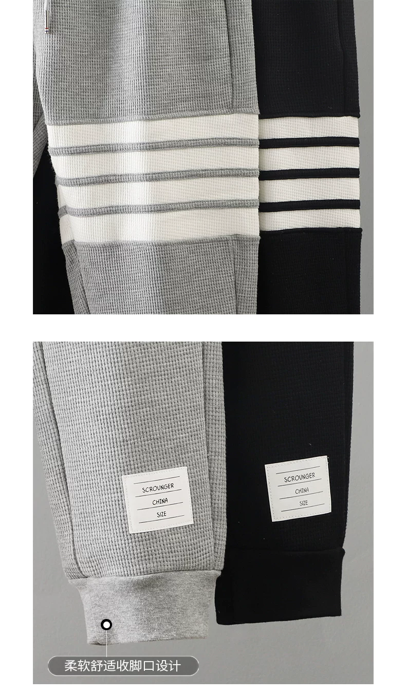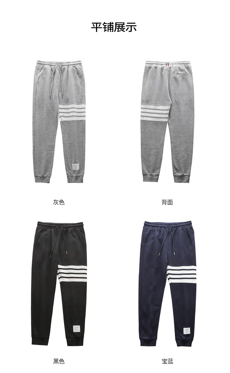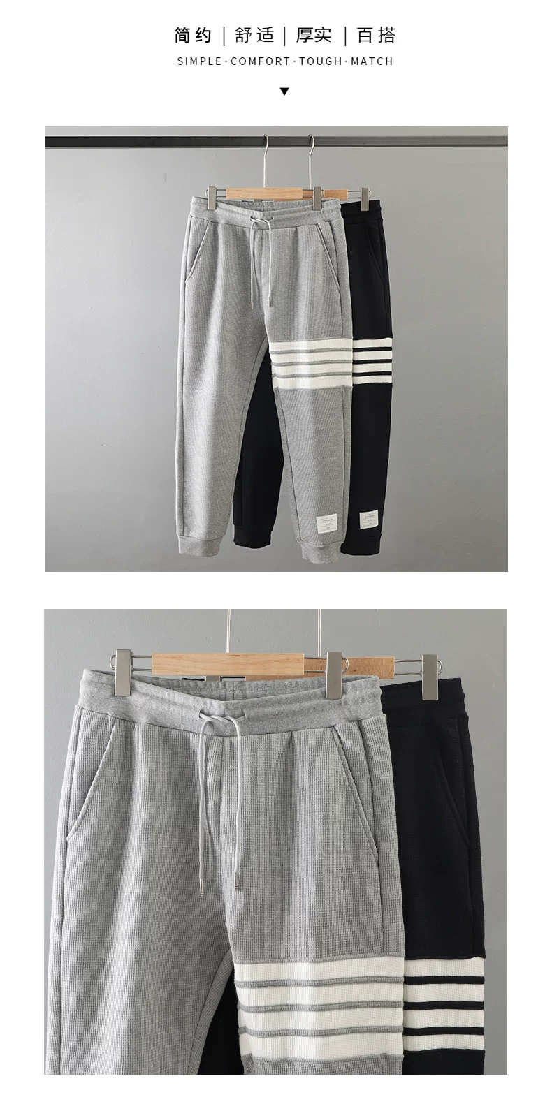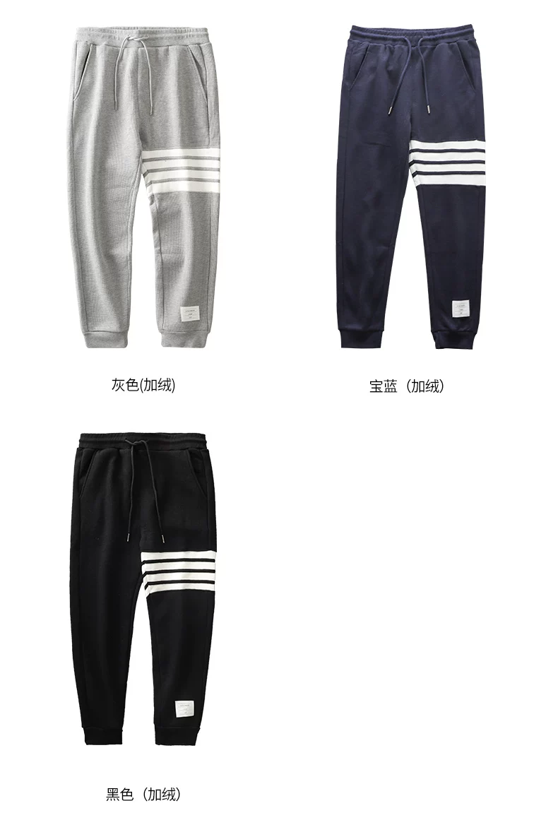 - Quần thể thao nỉ TB dành cho nam, mùa thu đông dày dặn, kiểu dáng cổ điển bốn sọc, quần jogger màu xám, phong cách thường ngày