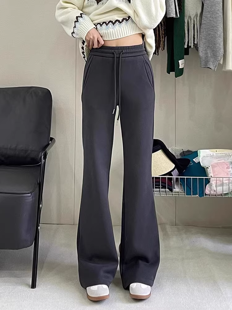 - Quần thể thao nữ dáng rộng ống đứng phong cách retro Mỹ, mùa xuân 2025, size lớn, cạp cao, tôn dáng, quần thể thao rộng ống