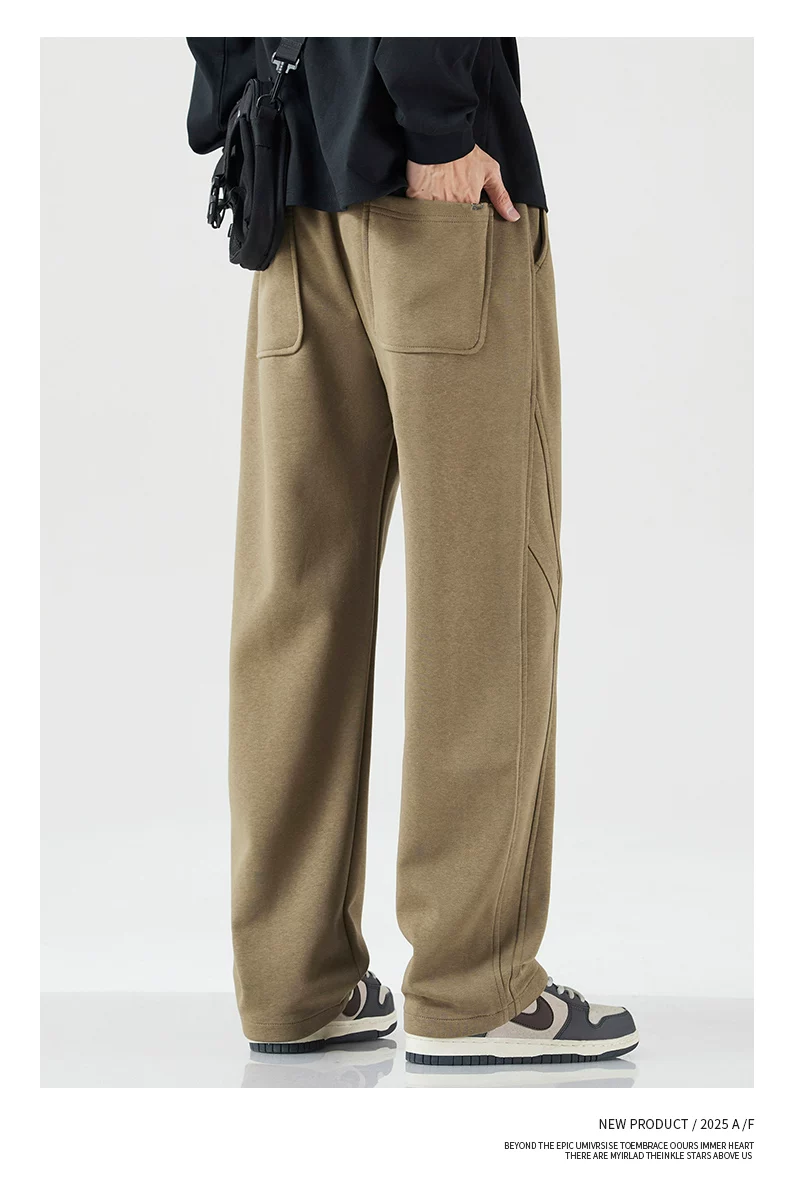 - Quần thể thao ống đứng hạng nặng OMZM dành cho nam, quần ống rộng dáng rộng nối cao cấp mùa thu, quần thể thao cổ điển kiểu Mỹ