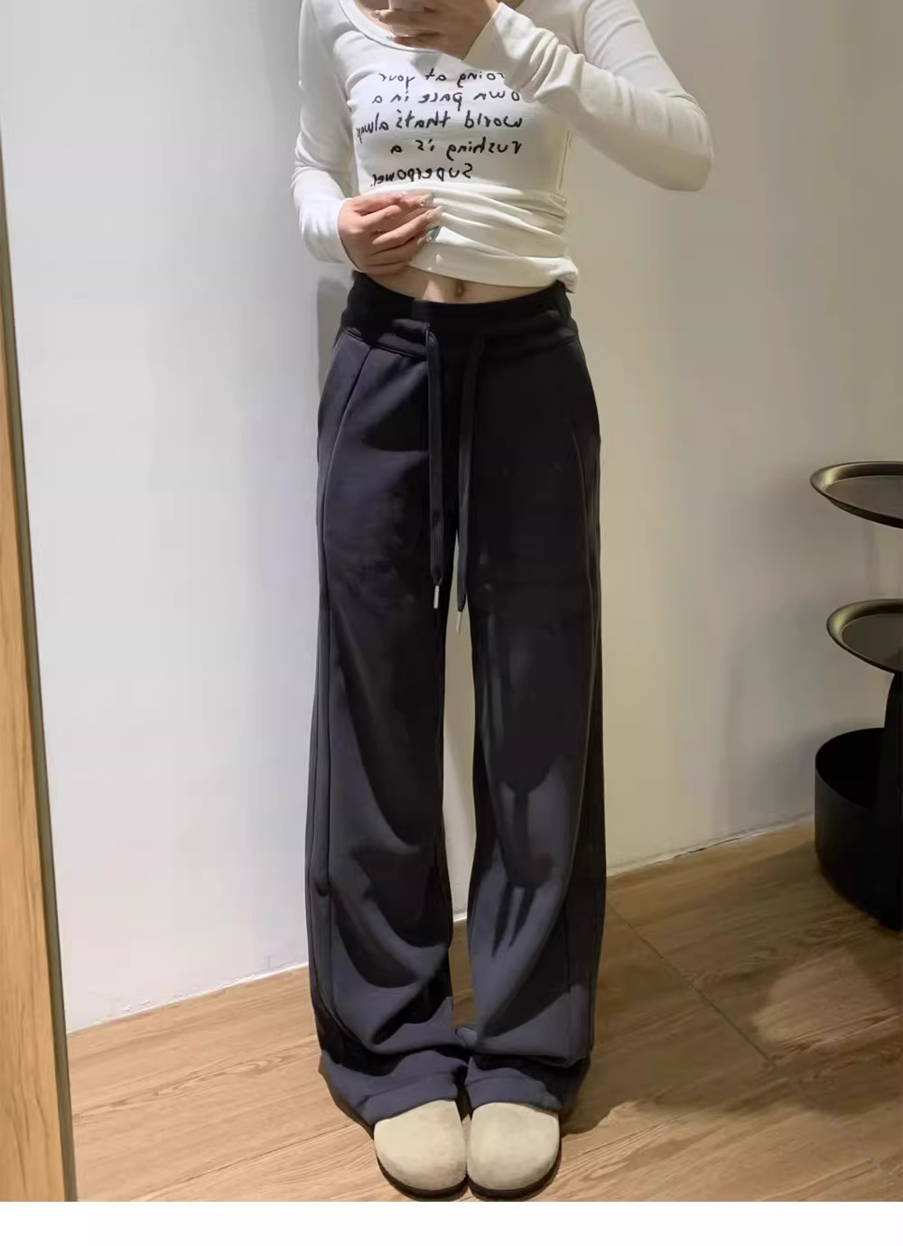 - Quần thể thao ống đứng màu xám đậm kiểu Mỹ dành cho nữ, lót lông cừu mùa thu đông, cỡ lớn, cạp cao, che hông, quần thể thao giảm béo.