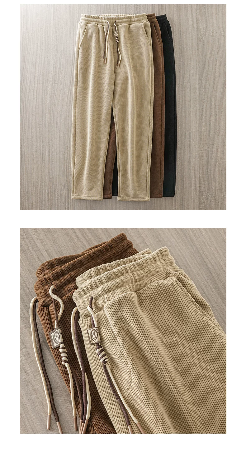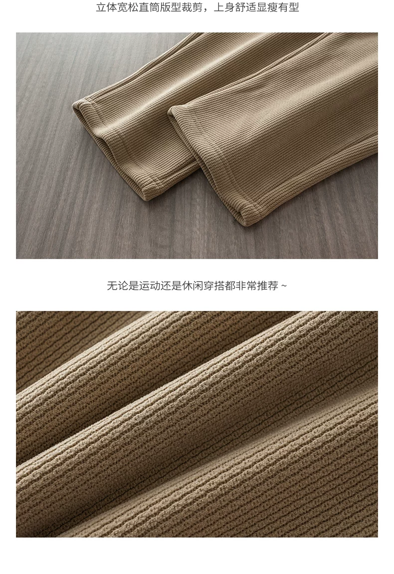 - Quần thể thao ống đứng OMZM chenille dành cho nam, mùa thu đông 2023 quần thể thao dáng rộng mới có lông cừu, quần dài dáng suông thông thường