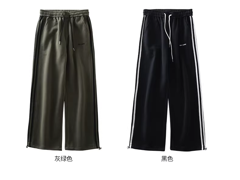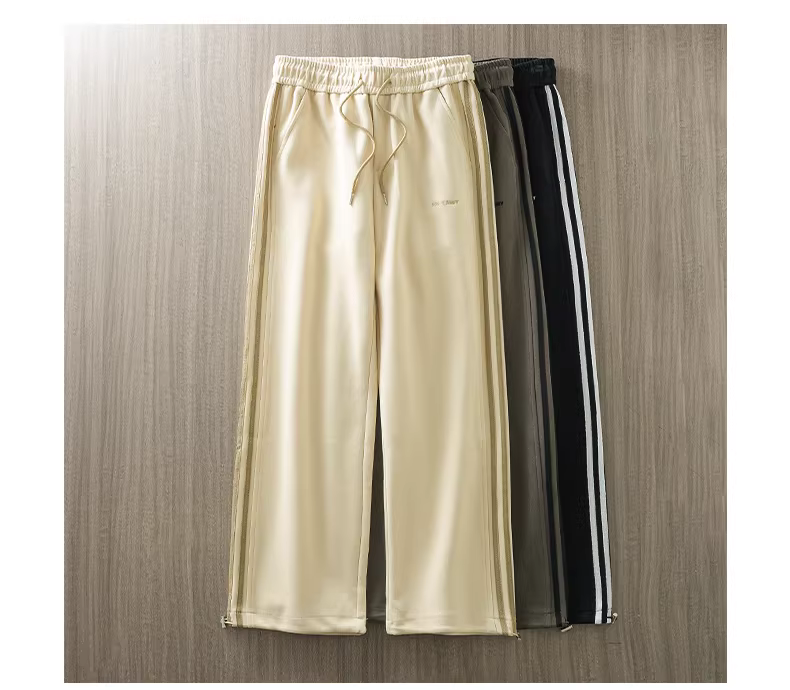 Quần thể thao sọc nặng kiểu Mỹ dành cho nam, thương hiệu hợp thời trang mùa thu, quần ống rộng xếp ly, quần thể thao ống rộng đa năng, phong cách thường ngày