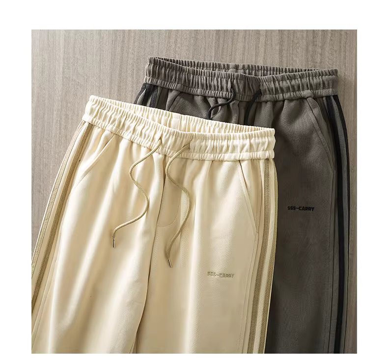 - Quần thể thao sọc nặng kiểu Mỹ dành cho nam, thương hiệu hợp thời trang mùa thu, quần ống rộng xếp ly, quần thể thao ống rộng đa năng, phong cách thường ngày