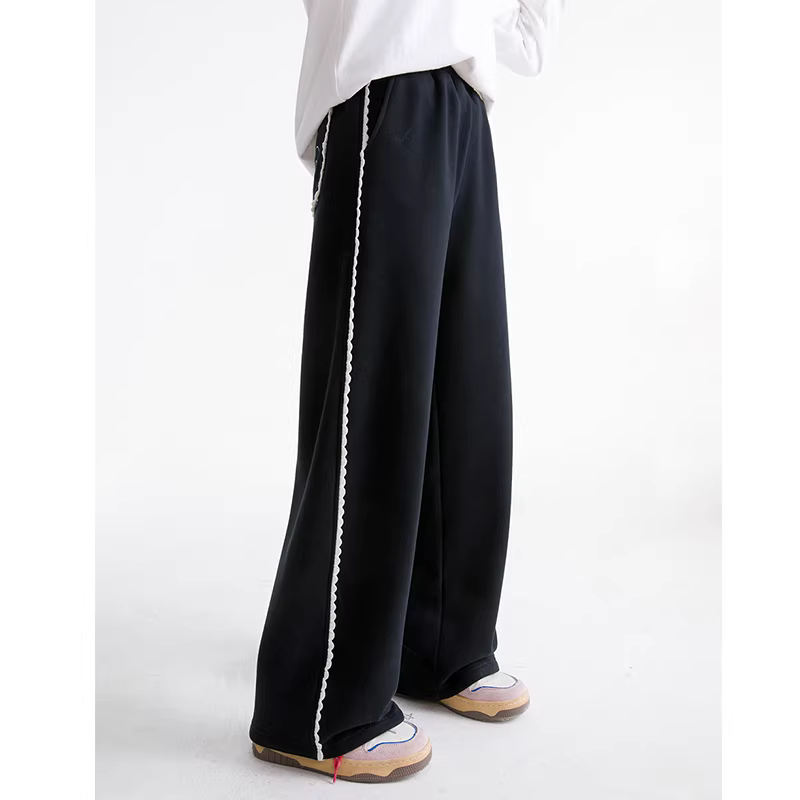 Quần thể thao thường ngày có viền ren lót lông cừu dành cho trẻ em, phong cách thu đông, quần ống rộng cho bé trai và bé gái, quần dài ống đứng có lót lông cừu, giúp thon gọn.