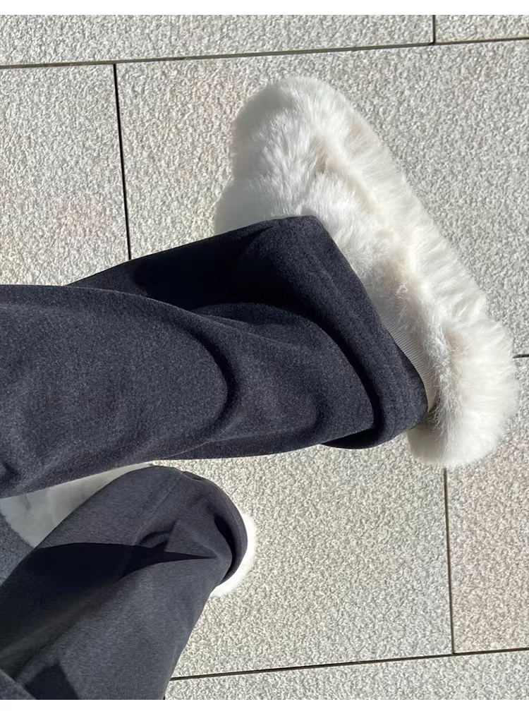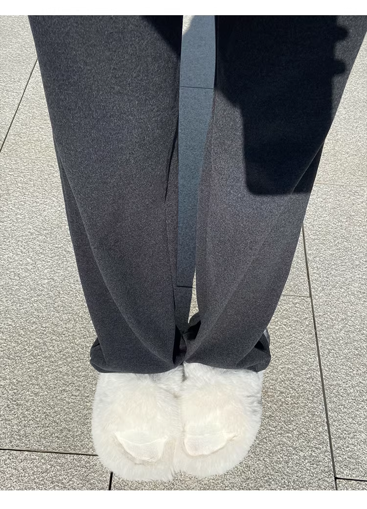 - Quần thường ngày bằng gạo nếp màu xám đậm, cỡ lớn dành cho nữ, lót lông cừu mùa thu đông, cạp cao, dáng rộng, dáng rộng, quần ống rộng, dáng rộng.