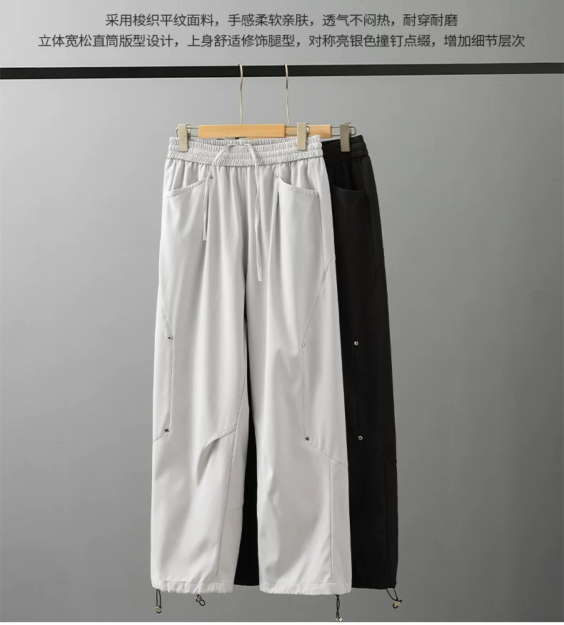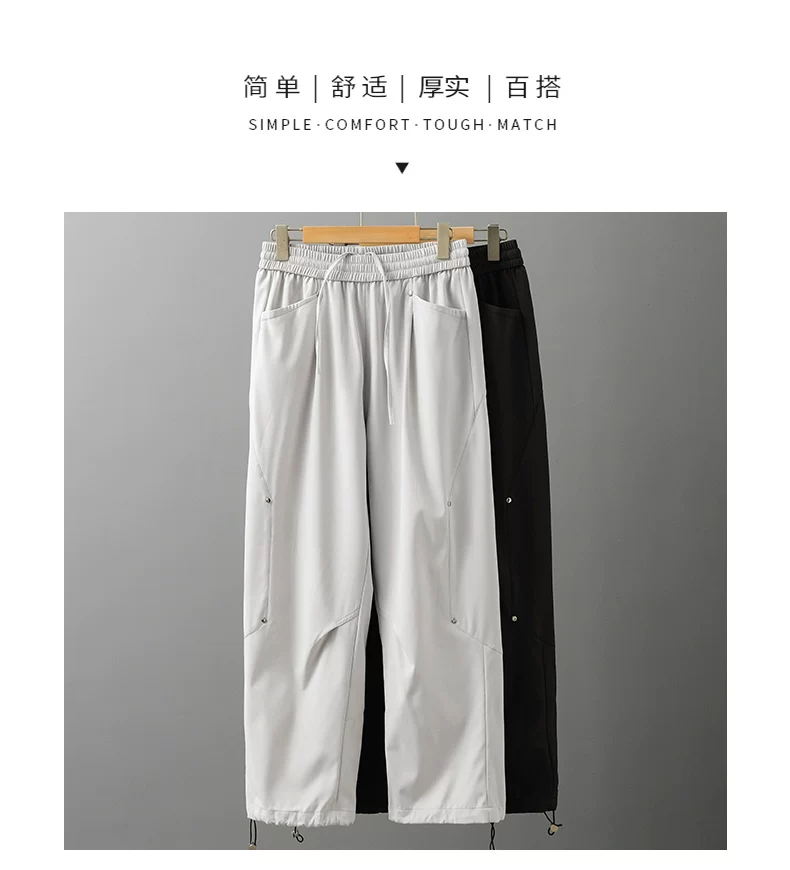 Quần thường ngày kiểu Mỹ OMZM dành cho nam, quần jogger mùa xuân có dây rút, kiểu dáng thời trang, quần dài ống rộng màu trơn