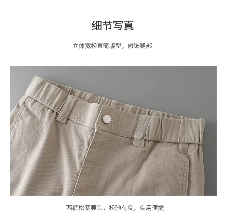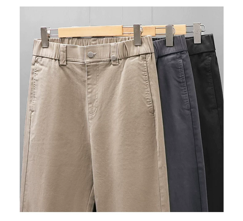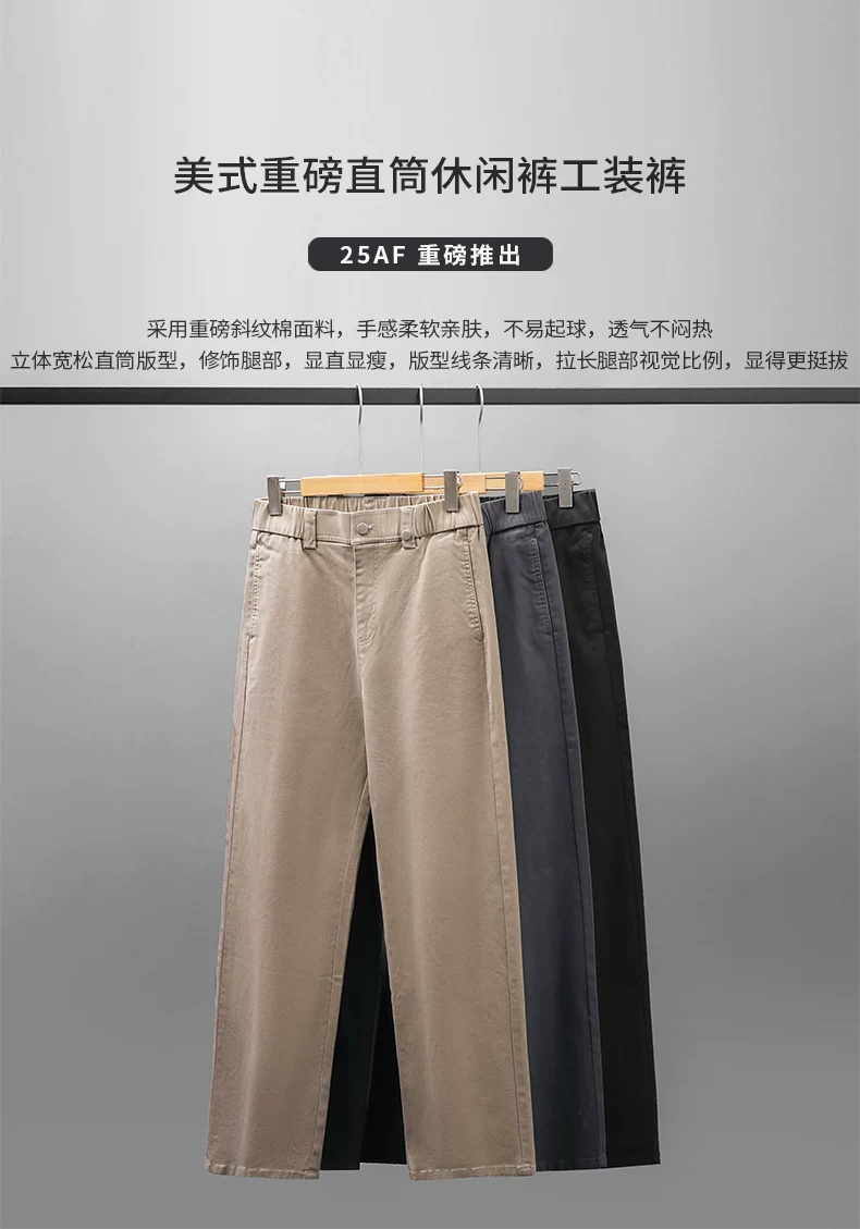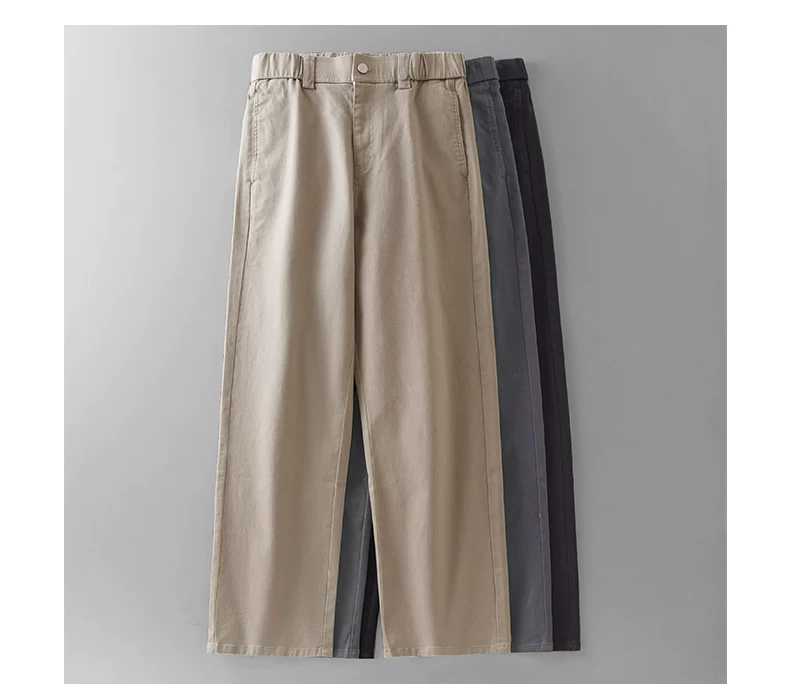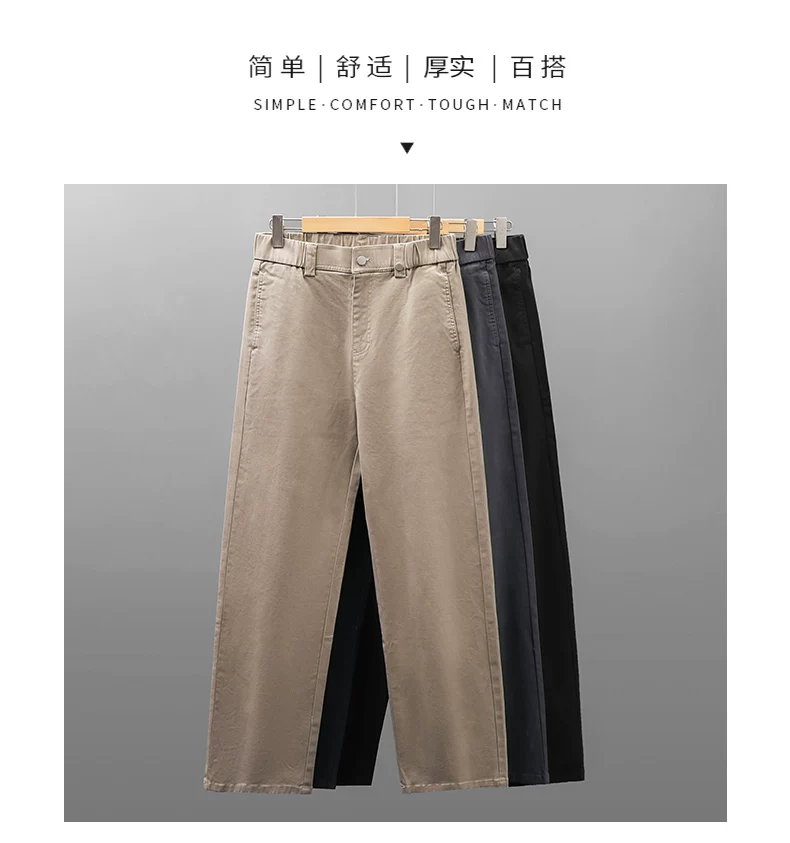 Quần thường ngày kiểu Mỹ OMZM dành cho nam, quần kaki dáng rộng thẳng cổ điển mùa thu, quần ống rộng màu trơn dành cho công sở.