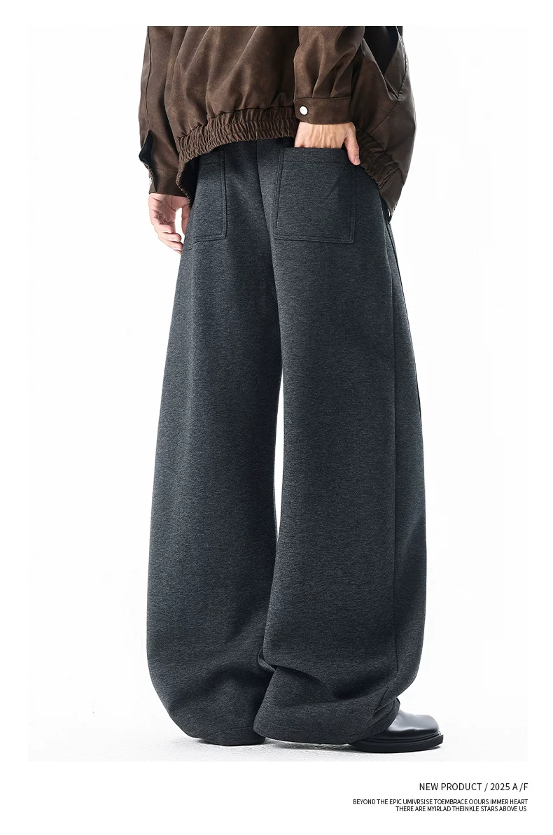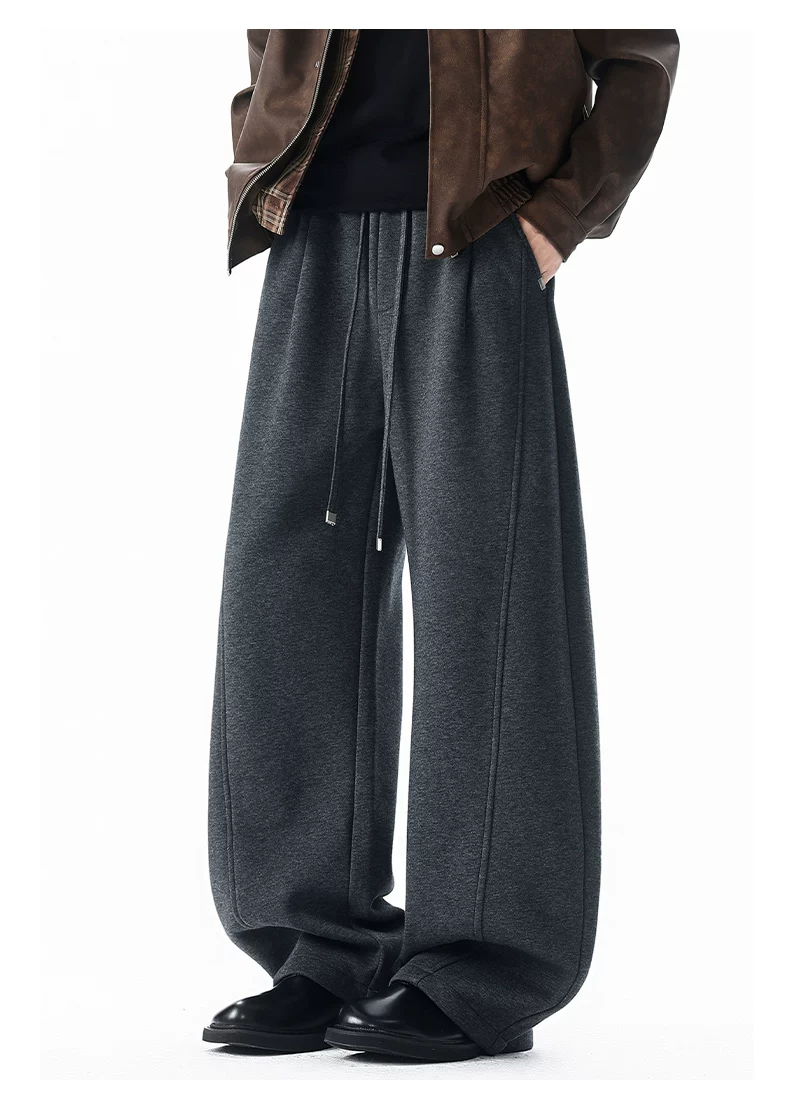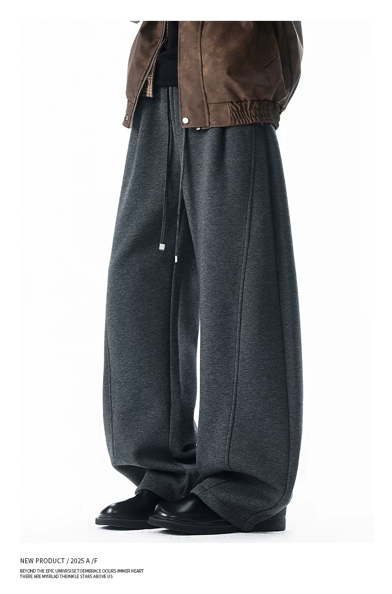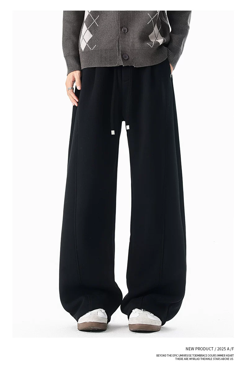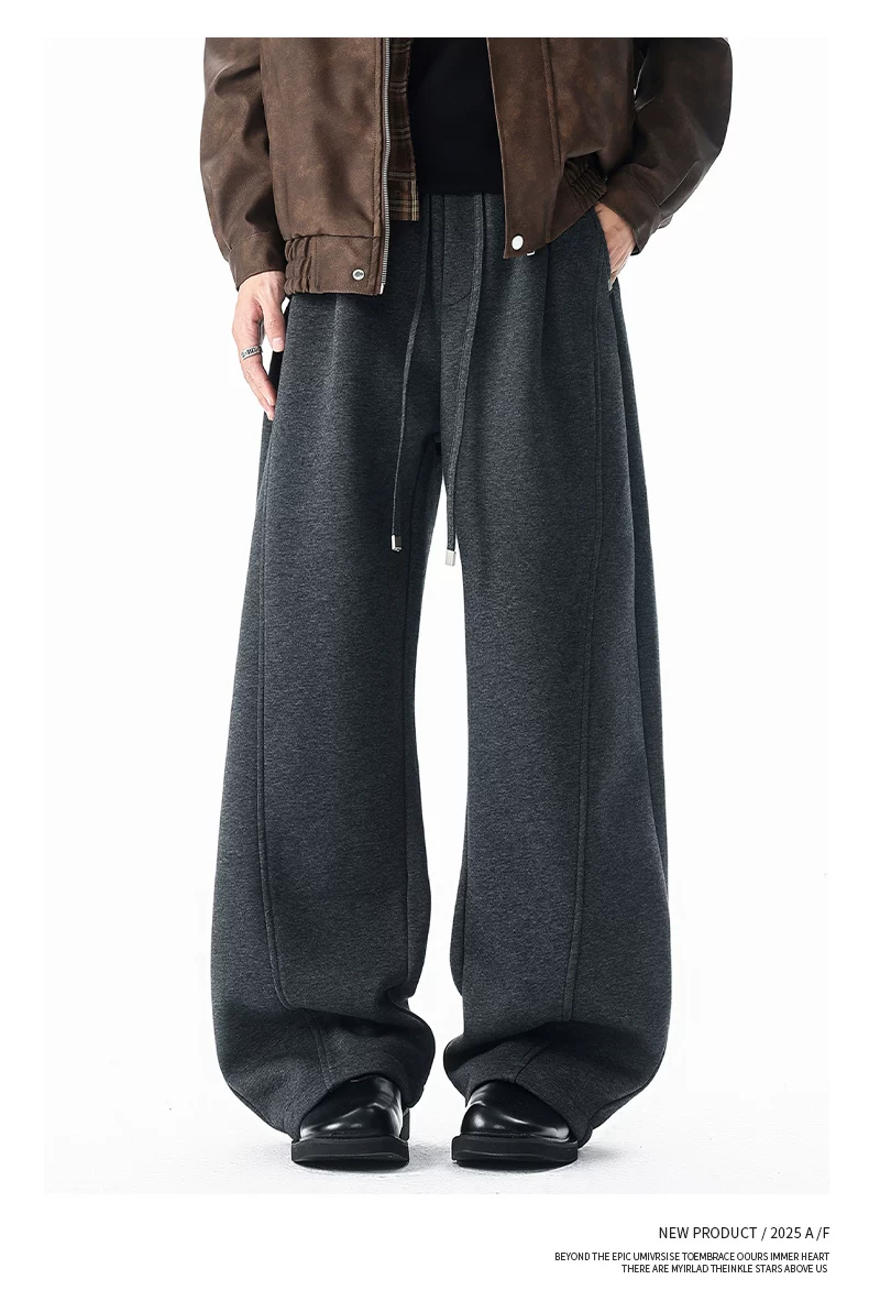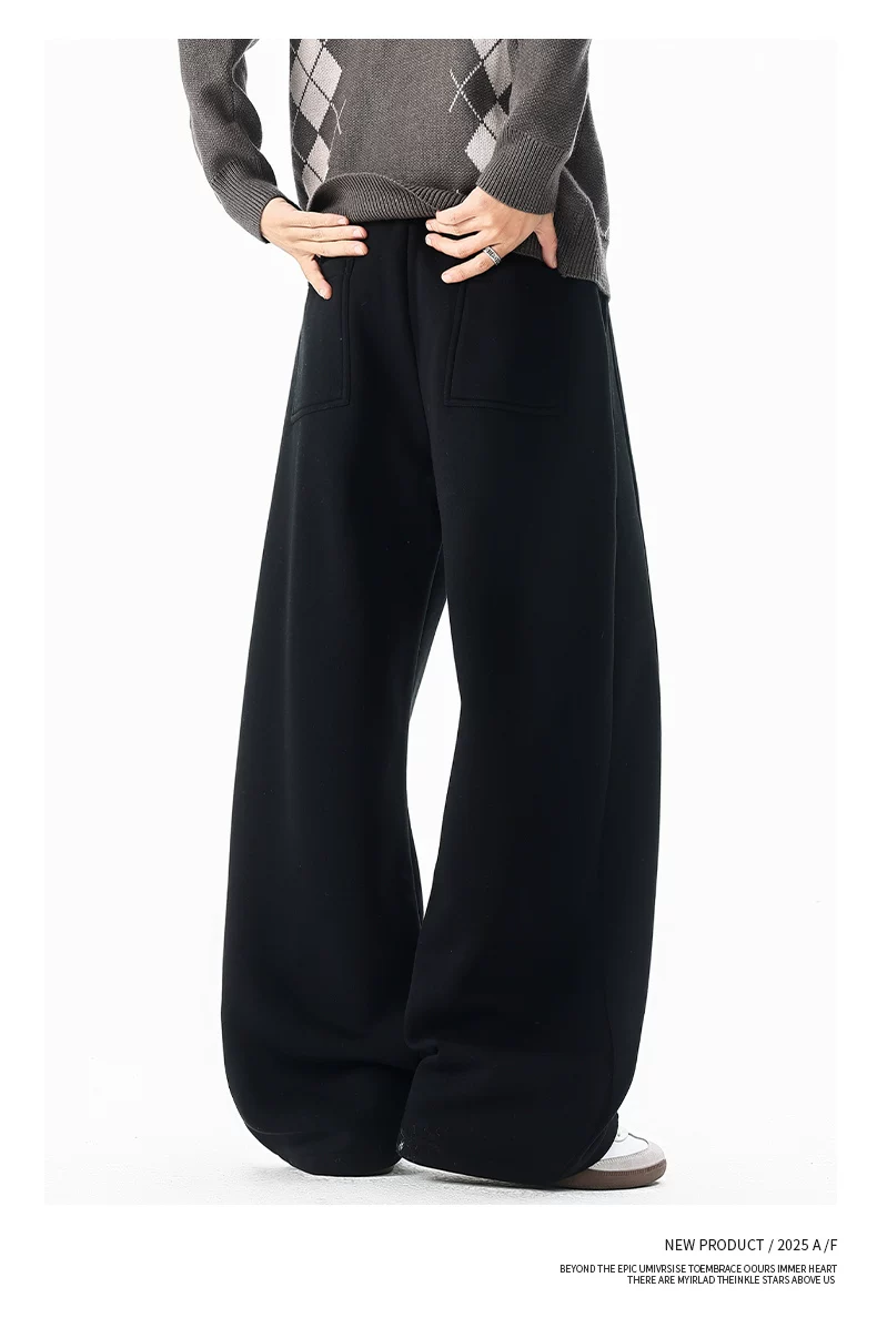 Quần thường ngày lót lông cừu hạng nặng OMZM dành cho nam, quần dáng rộng ống thẳng dáng rộng mùa đông, quần thể thao dày dặn ấm áp
