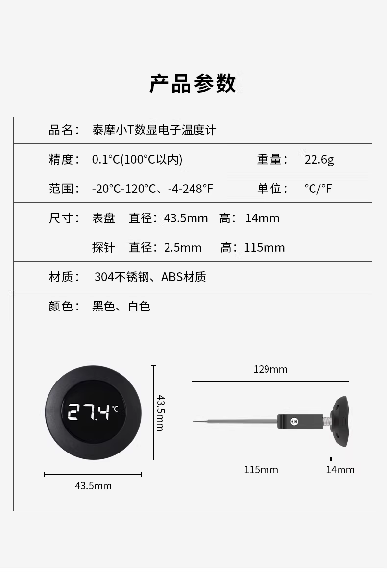 - Taimo Nhiệt kế kỹ thuật số nhỏ T Nhiệt kế cà phê Cà phê sữa Latte Art Xi lanh Đo nhiệt độ nhà bếp