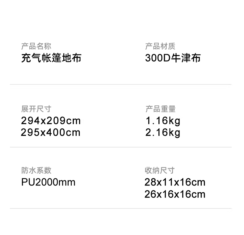 - Tấm lót sàn lều bơm hơi ngoài trời chất liệu vải Oxford 300D dày dặn, chống bẩn, chống ẩm, bảo vệ mặt đất khi cắm trại