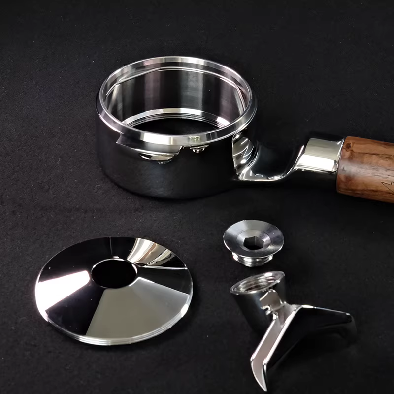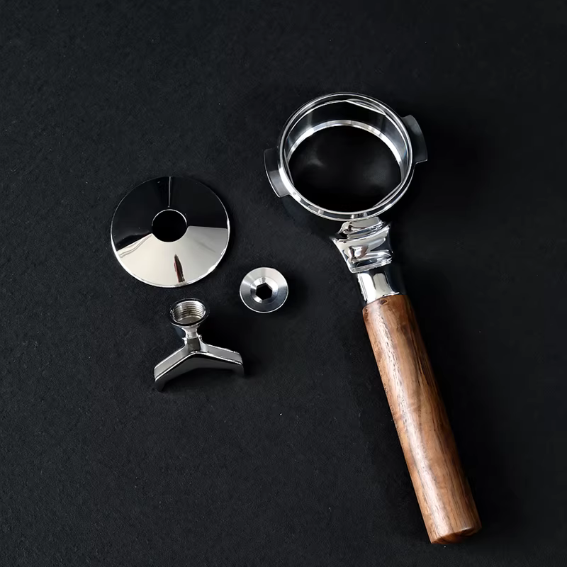 - Tay cầm pha cà phê hai miệng kiểu khăm, chiết xuất không đáy, gắn phẳng, tháo rời được E61