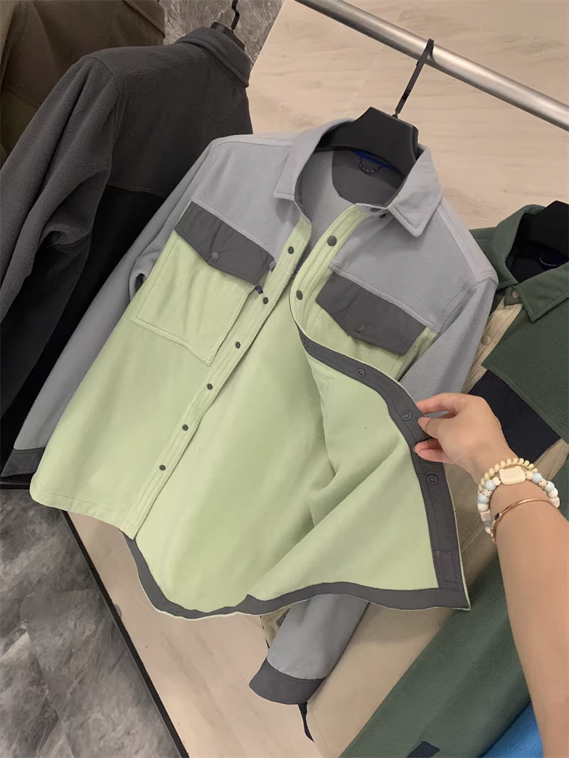 飞钓徒步抓绒拼色衬衫