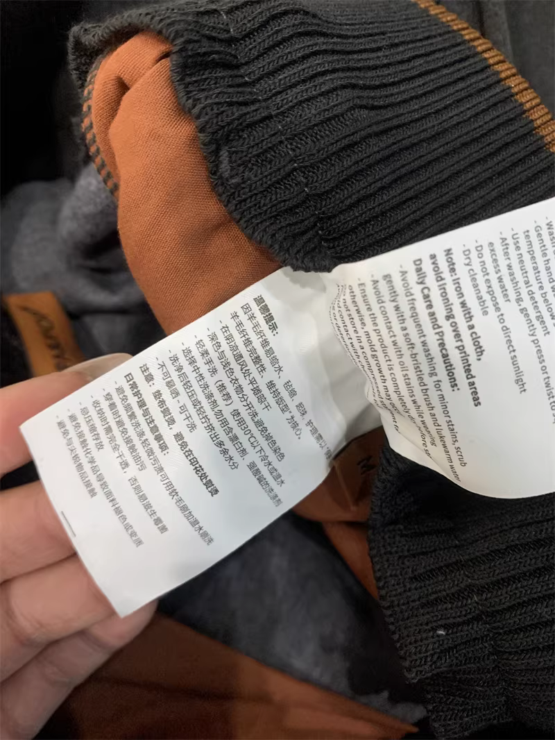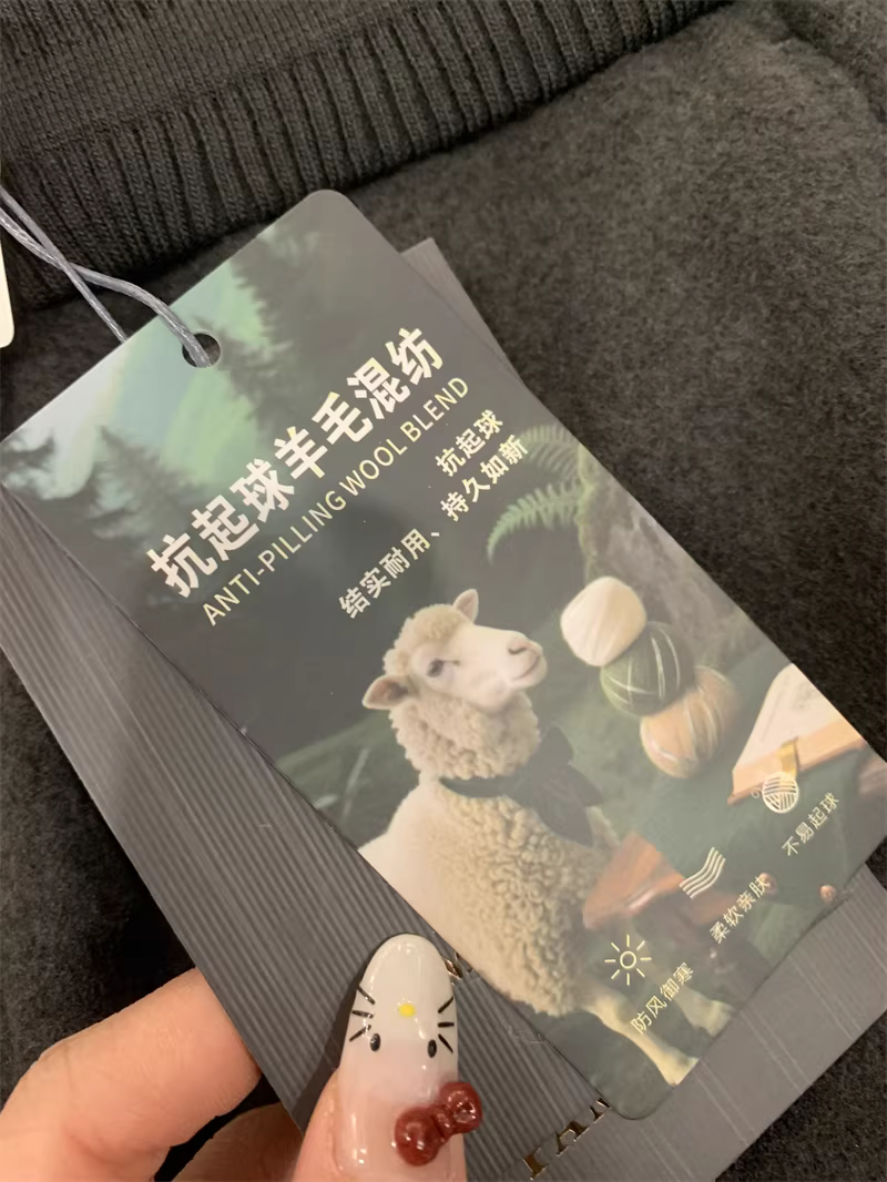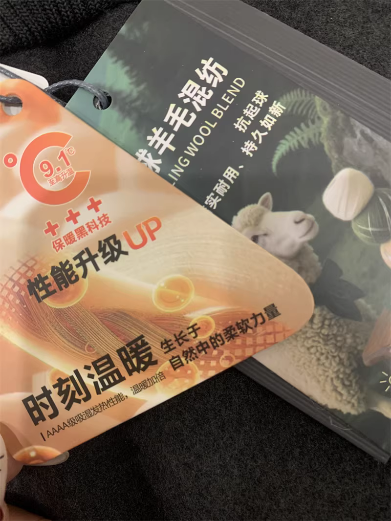 面料:63.1%聚酯纤维+29.3%粘纤+6.3%绵羊毛+1.3%氨纶