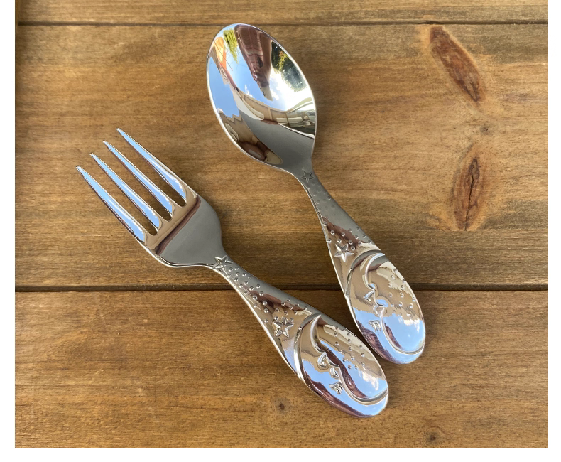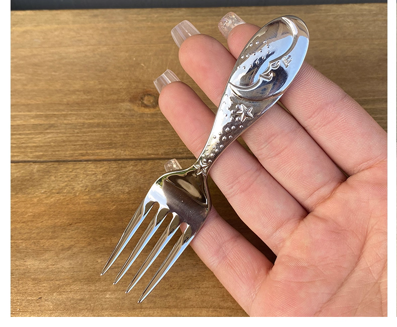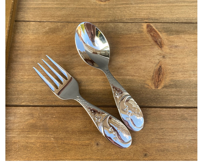 - Thép không gỉ 304 ngôi sao và mặt trăng thìa và nĩa trẻ em thìa ăn cho bé thìa ăn tập ăn cho bé bộ đồ ăn thìa ăn mì
