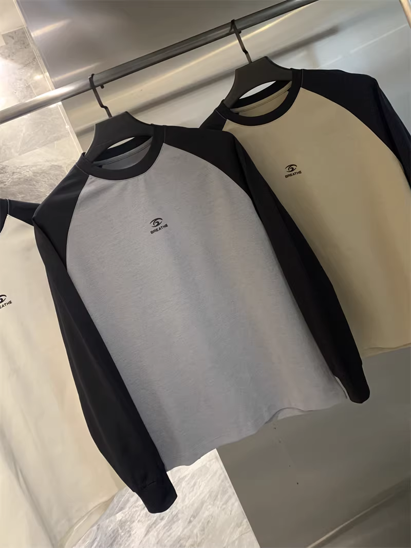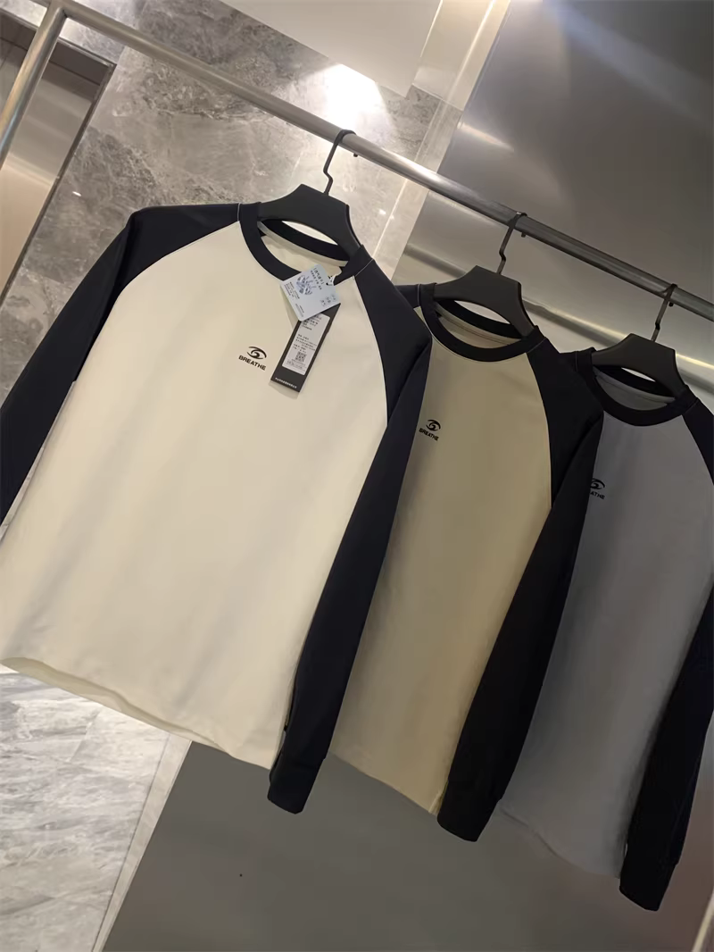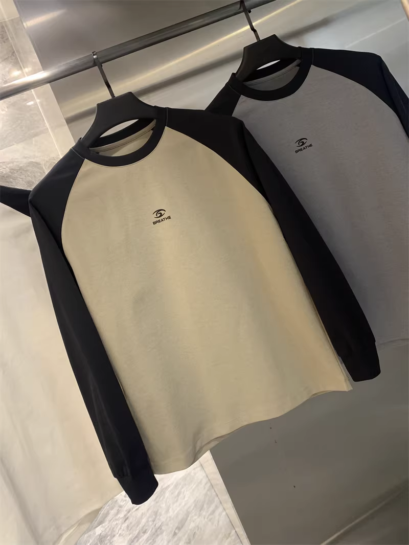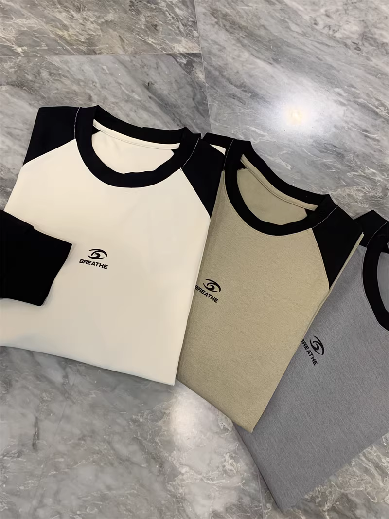- Thiết kế cổ raglan cổ điển của Don Quixote! Áo thun dài tay cổ tròn màu sắc phối hợp phong cách unisex mùa xuân thu, kiểu dáng thời thượng
