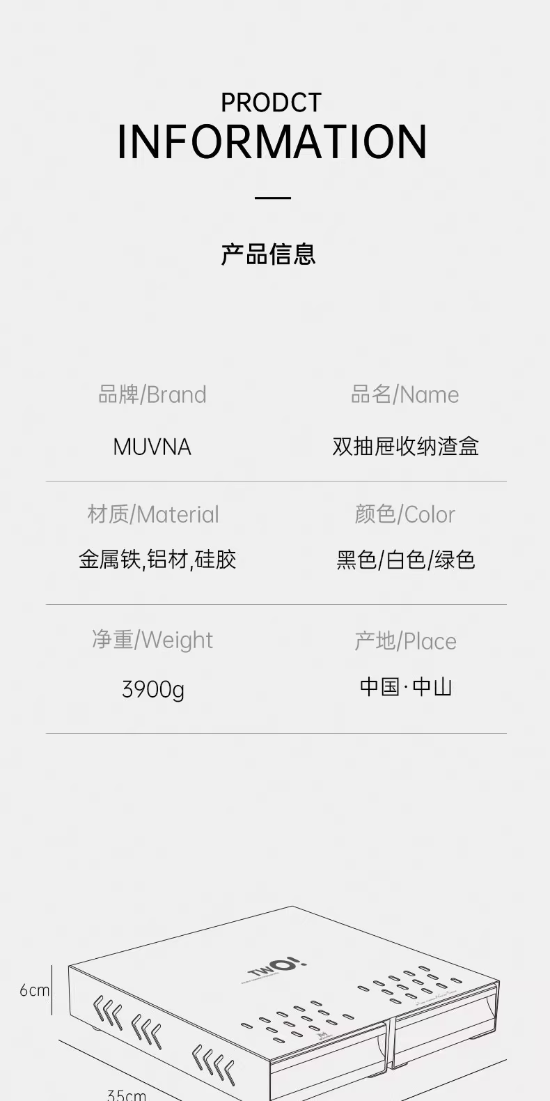 Thùng đựng bã cà phê kiểu ngăn kéo MUVNA, dành cho quán cà phê thương mại, máy pha cà phê, thùng chứa bã cà phê