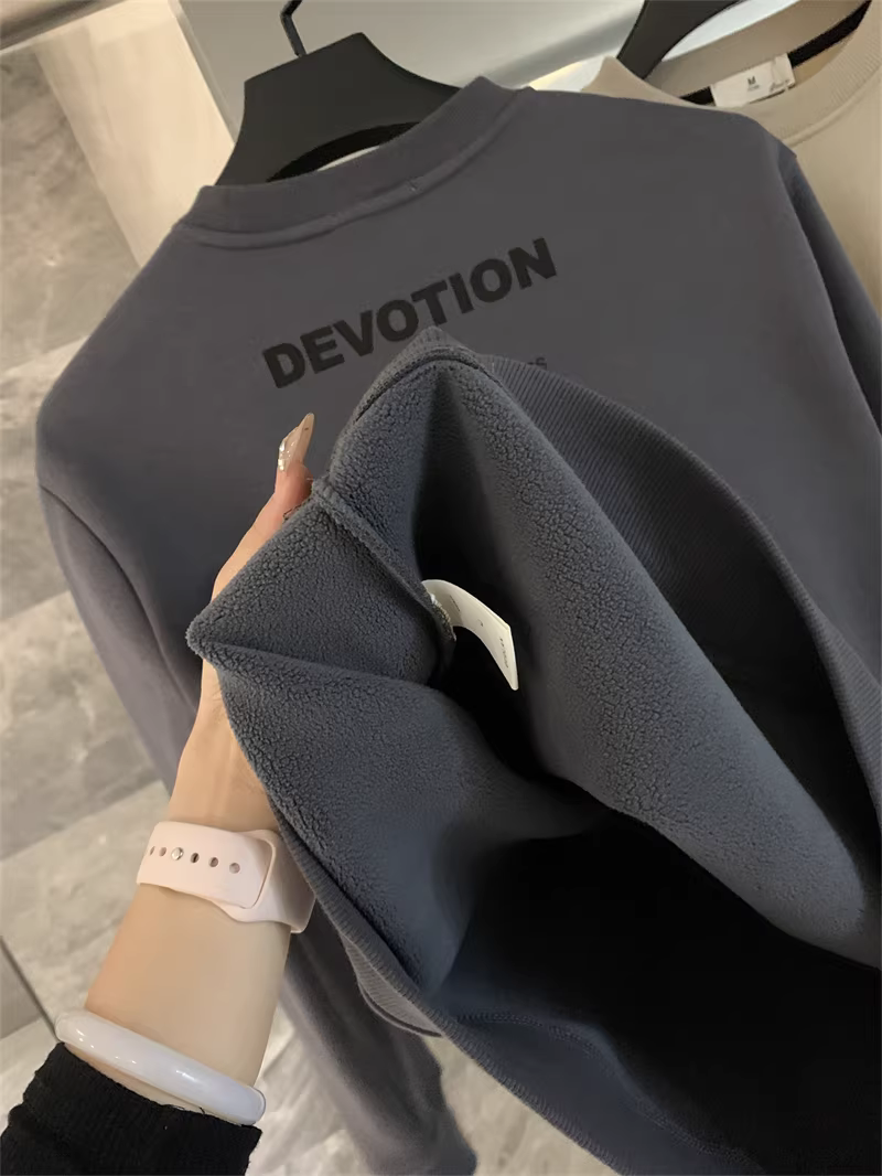 - Thương hiệu thời trang theo phong cách Nhật Bản Don Quixote! Áo len cổ tròn dáng rộng đa năng, thời trang, lót lông cừu dày dặn dành cho nam mùa thu đông