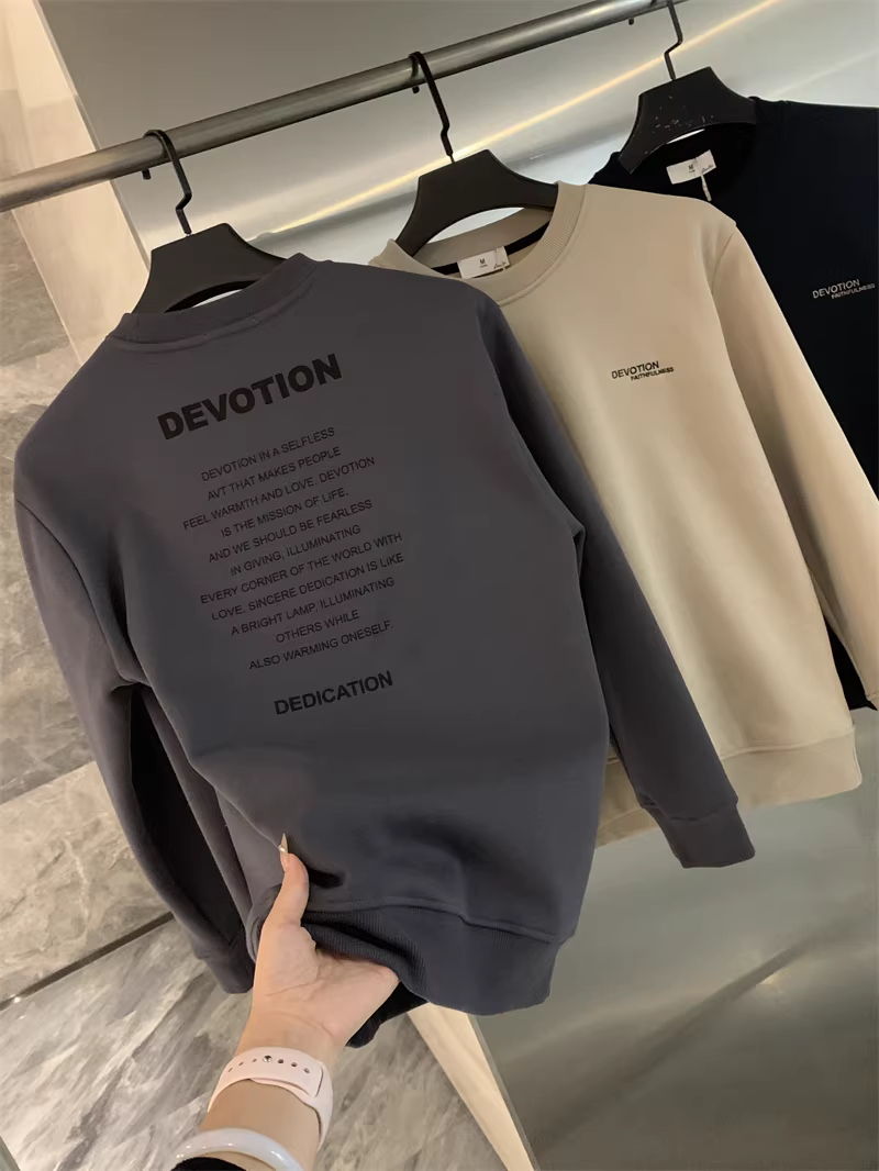 Thương hiệu thời trang theo phong cách Nhật Bản Don Quixote! Áo len cổ tròn dáng rộng đa năng, thời trang, lót lông cừu dày dặn dành cho nam mùa thu đông